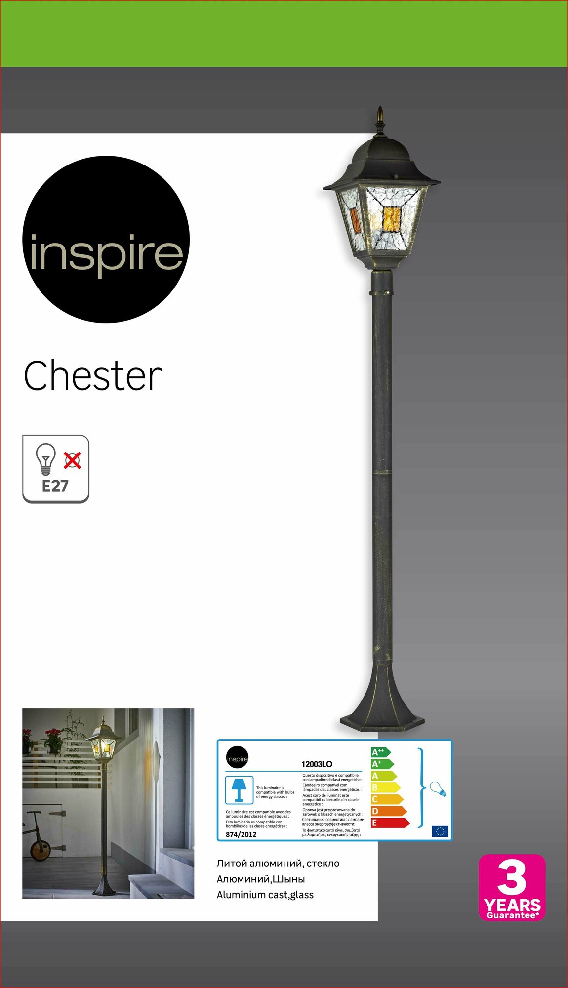 На сегодняшний день товар «Столб уличный Inspire Chester 1xE27х100 Вт 12 м декоративное стекло IP44» можно купить с кешбеком в 1 магазине: Яндекс.Маркет