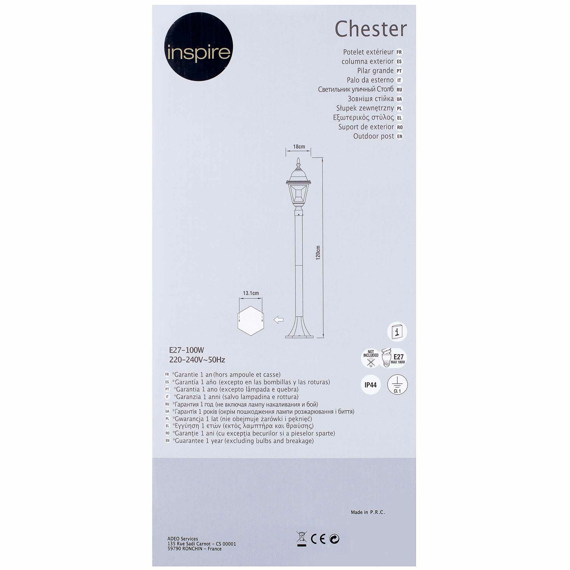 Столб уличный Inspire Chester 1xE27х100 Вт 12 м декоративное стекло IP44
