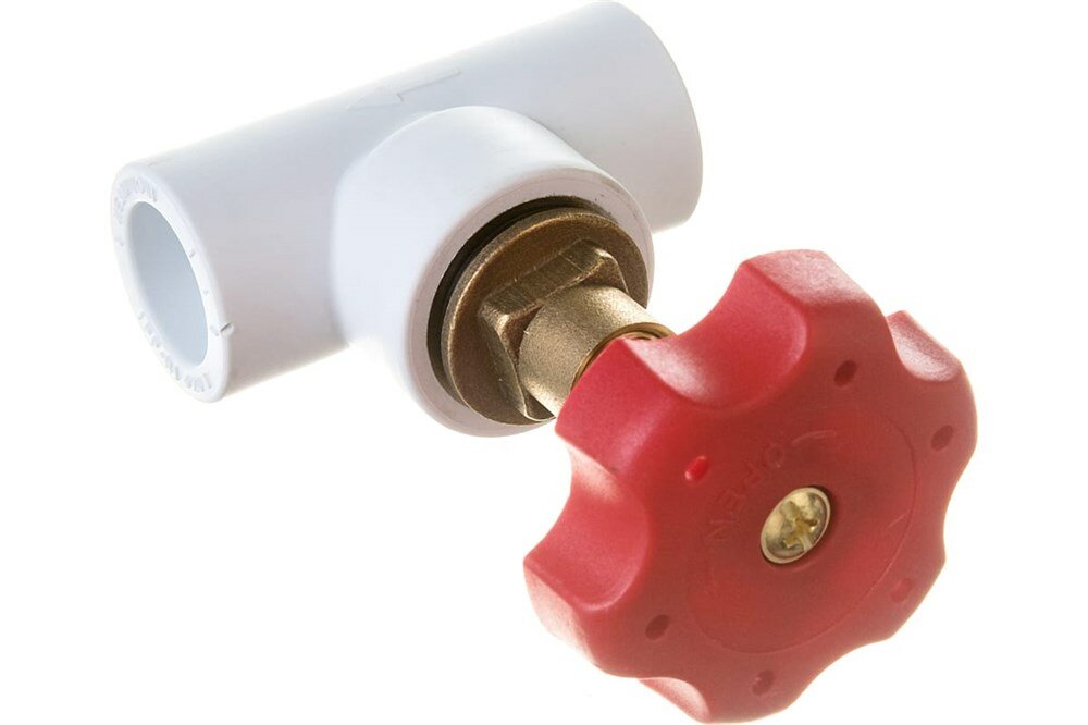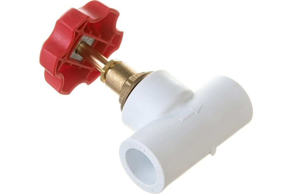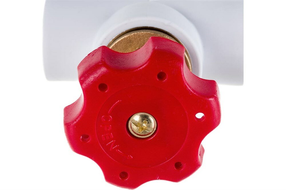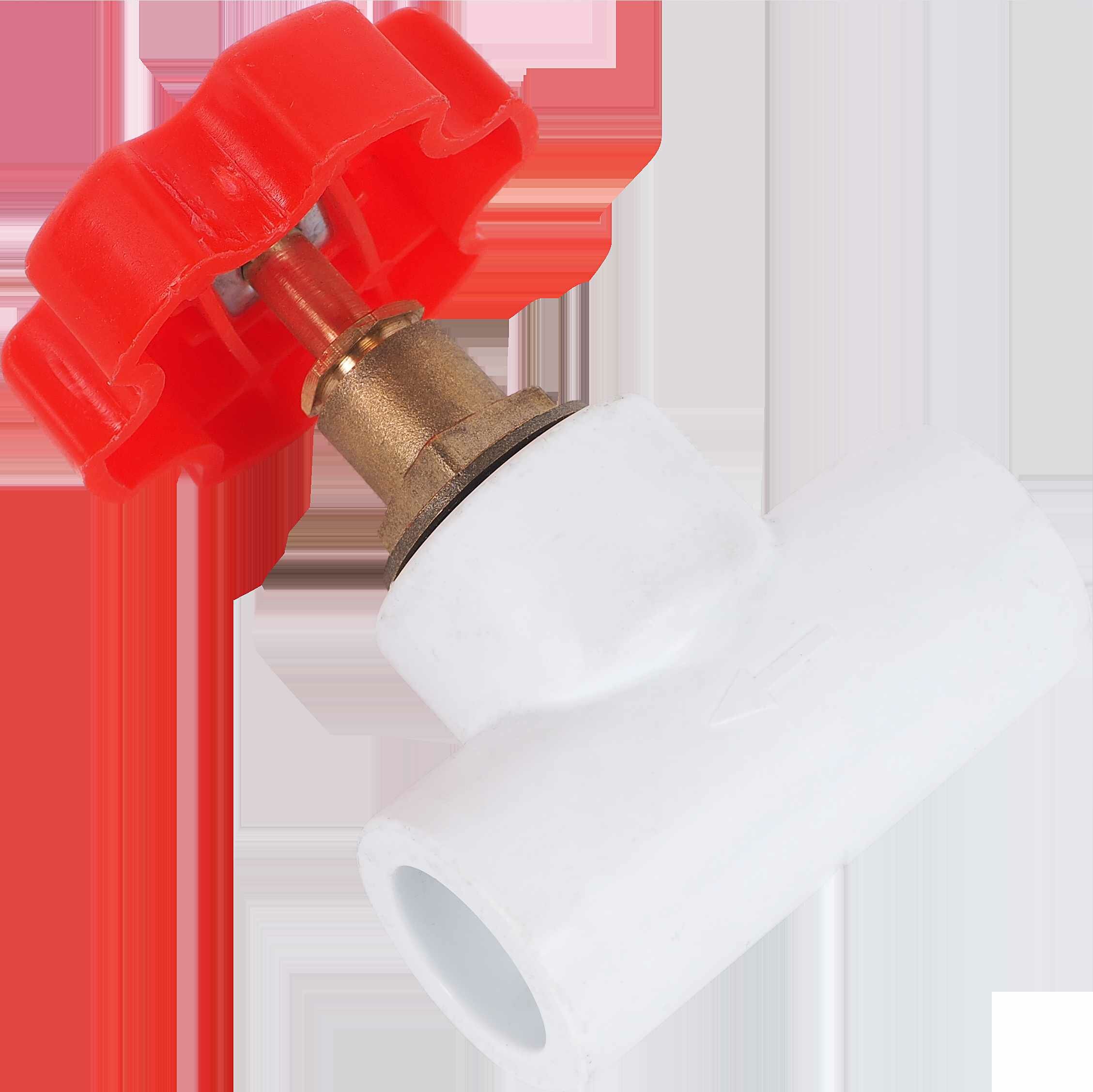 Вентиль белый Политэк PPR d=20 мм используется для регулирования проходящего потока жидкости в трубах PPR для горячего и холодного водоснабжения.