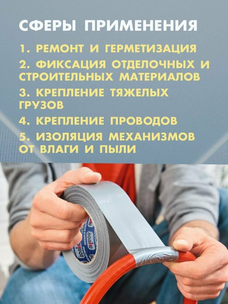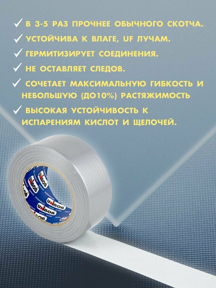 Армированная влагостойкая лента отличается превосходной клейкостью, что обеспечивает высокую прочность и максимальную герметичность соединений. Плотная серебристая лента от известного отечественного производителя имеет размер 48 мм х 40 м, весит всего 0,4 кг. Она используется в процессе герметизации кранов и другого сантехнического оборудования, вышедшего из строя, незаменима при упаковке тяжёлой тары и проведении ремонтных работ. Лента позволяет провести герметизацию стыков и швов, плотно прилегая к обрабатываемым поверхностям и не оказывая на них негативного воздействия.