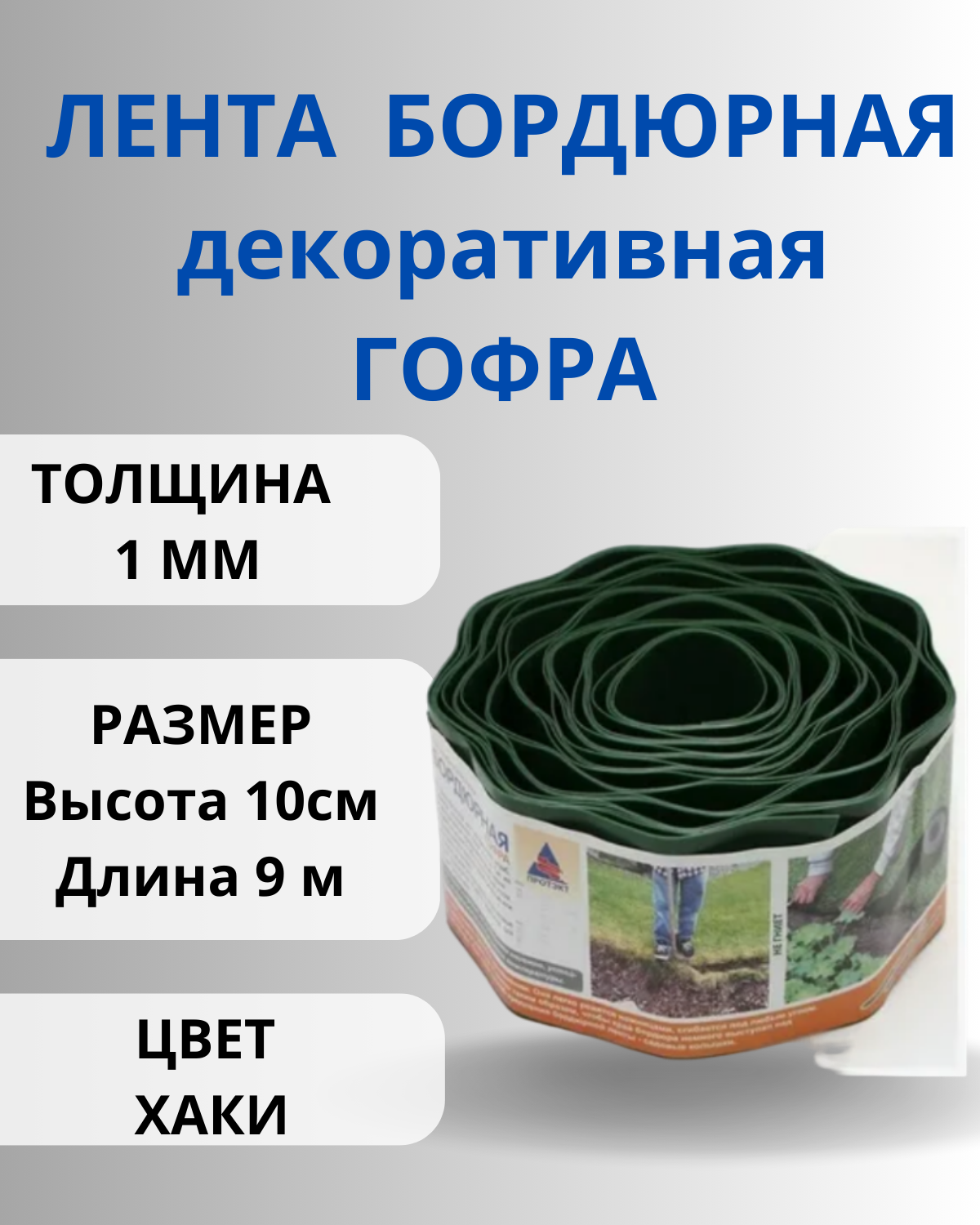 Лента бордюрная декоративная «Гофра» высота 10 см цвет хаки ПРОТЭКТ