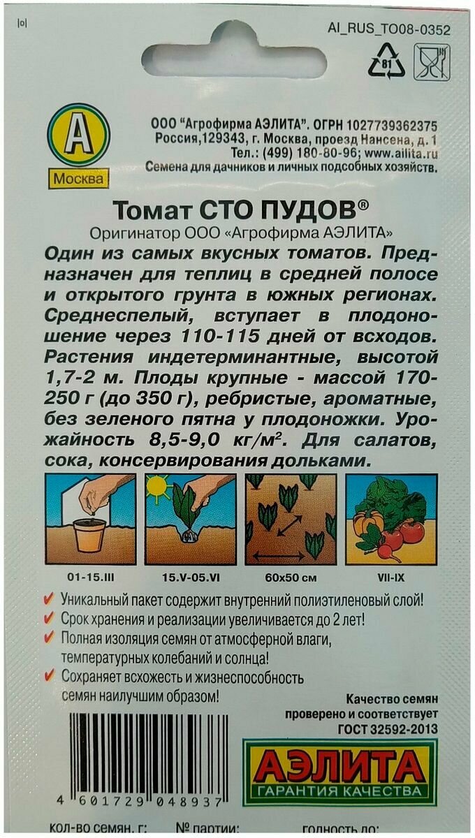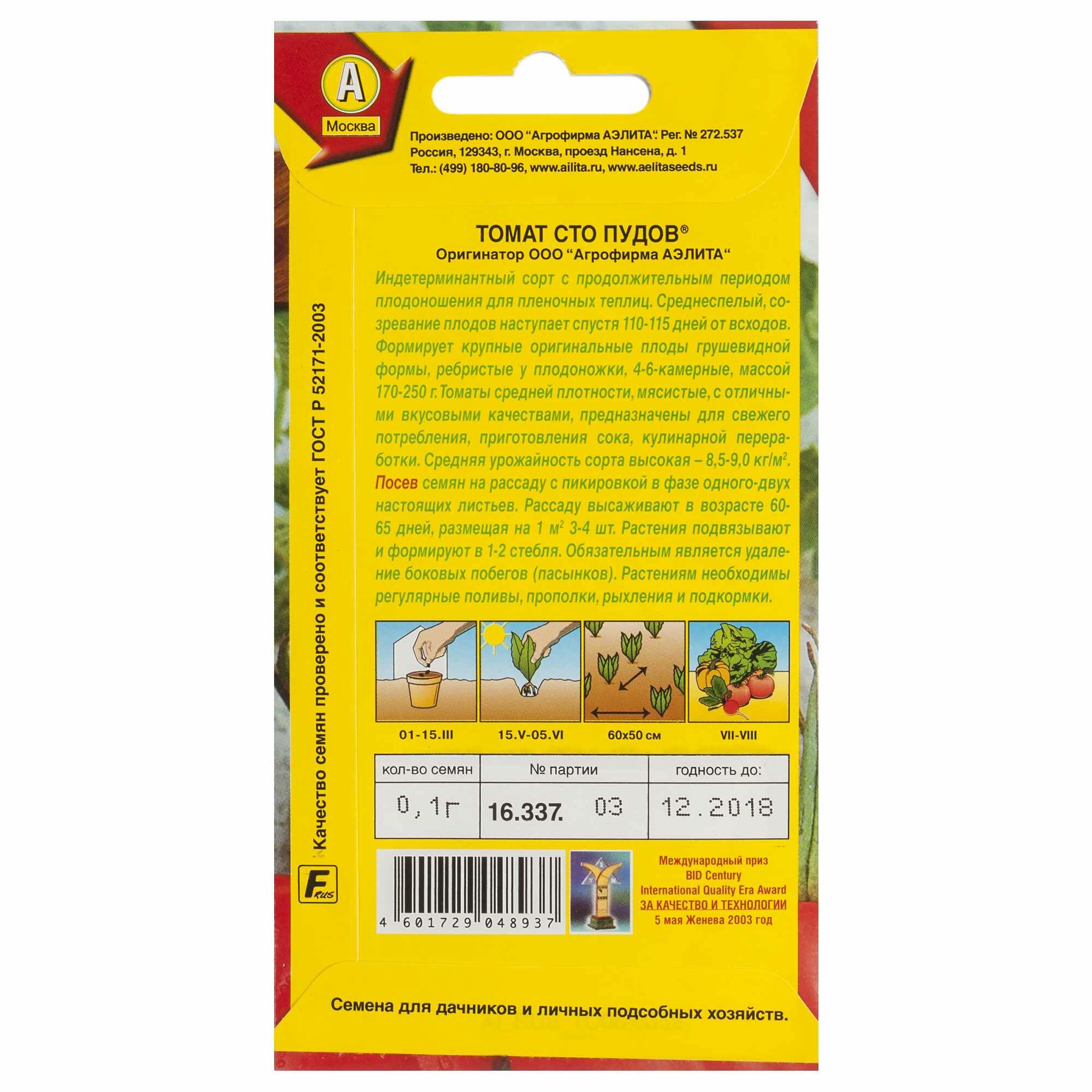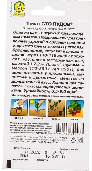 Семена Томат «Сто пудов» Аэлита