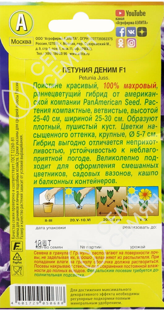 На сегодняшний день товар «Петуния махровая многоцветковая «Деним» F1 Аэлита» можно купить с кешбеком в 1 магазине: Яндекс.Маркет