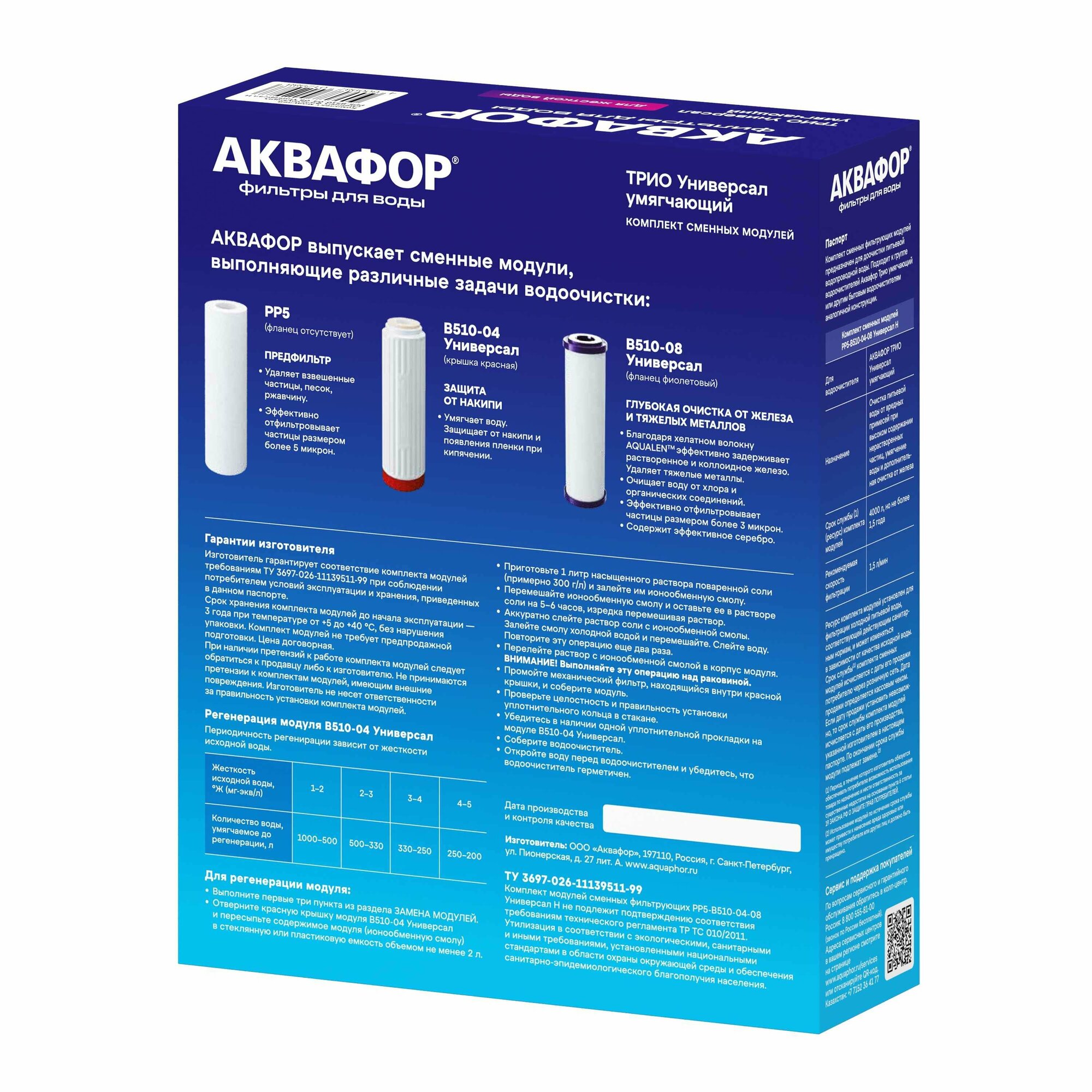Набор картриджей «Аквафор» B510-04-08 — фильтры, обеспечивающие глубокую очистку железистой воды средней жесткости. Предназначены для многоступенчатых установок этого производителя.