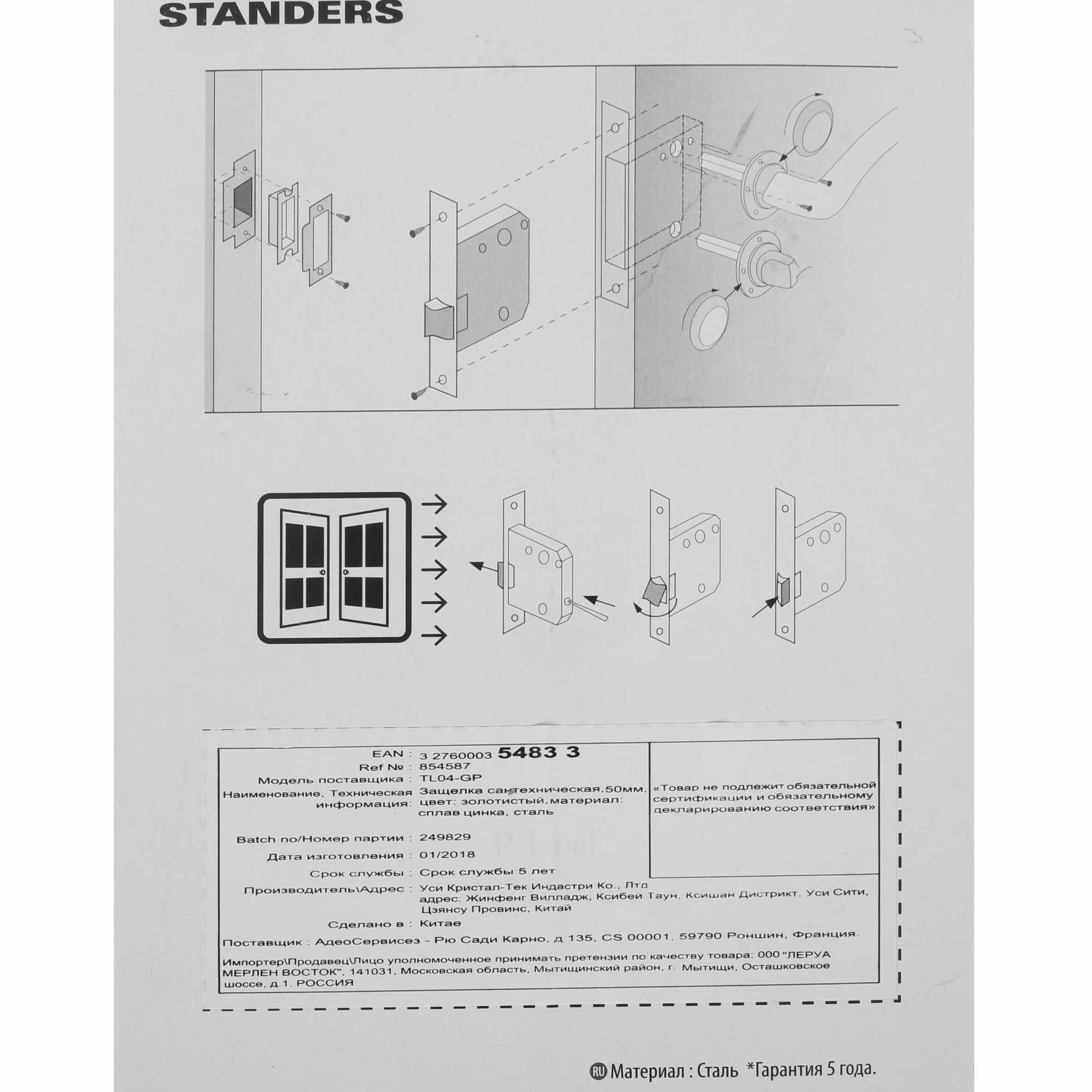 Защёлка под фиксатор металлическая Standers TL04 устанавливается в дверные полотна помещений санитарно-технического назначения. Подходит для дверей с распашной конструкцией. Возможна правосторонняя или левосторонняя установка детали.