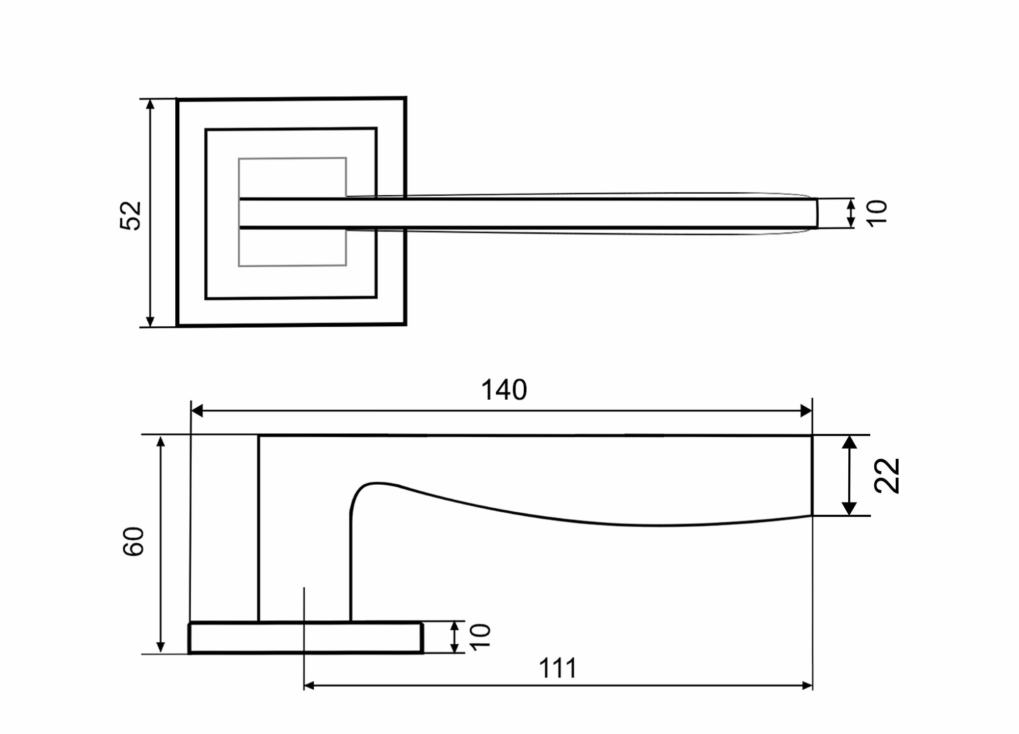 В комплект входят две ручки с декоративными накладками (розетками), стандартный стержень квадратного сечения и крепеж.