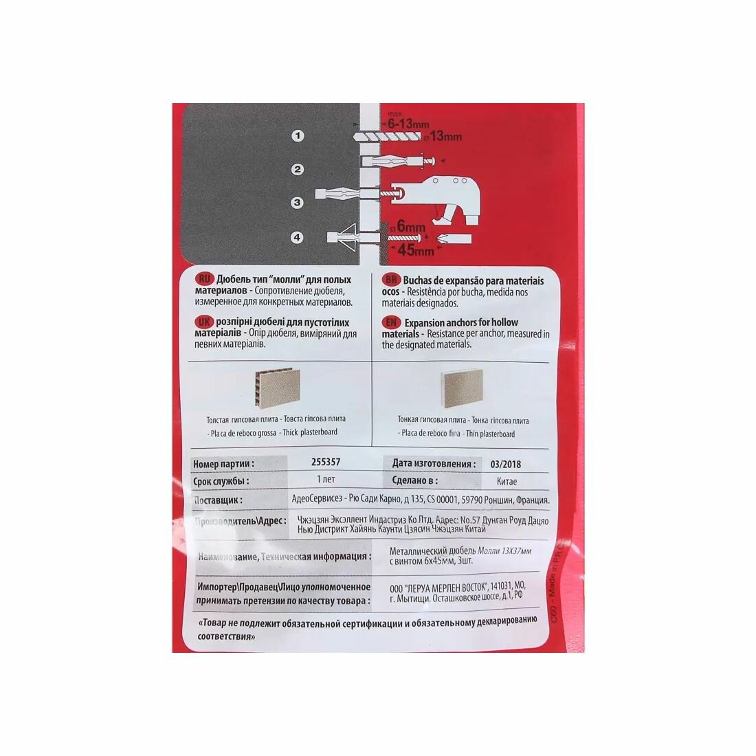 На сегодняшний день товар «Дюбель молли Standers 13x37 мм с винтом 3 шт.» можно купить с кешбеком в 1 магазине: Яндекс.Маркет