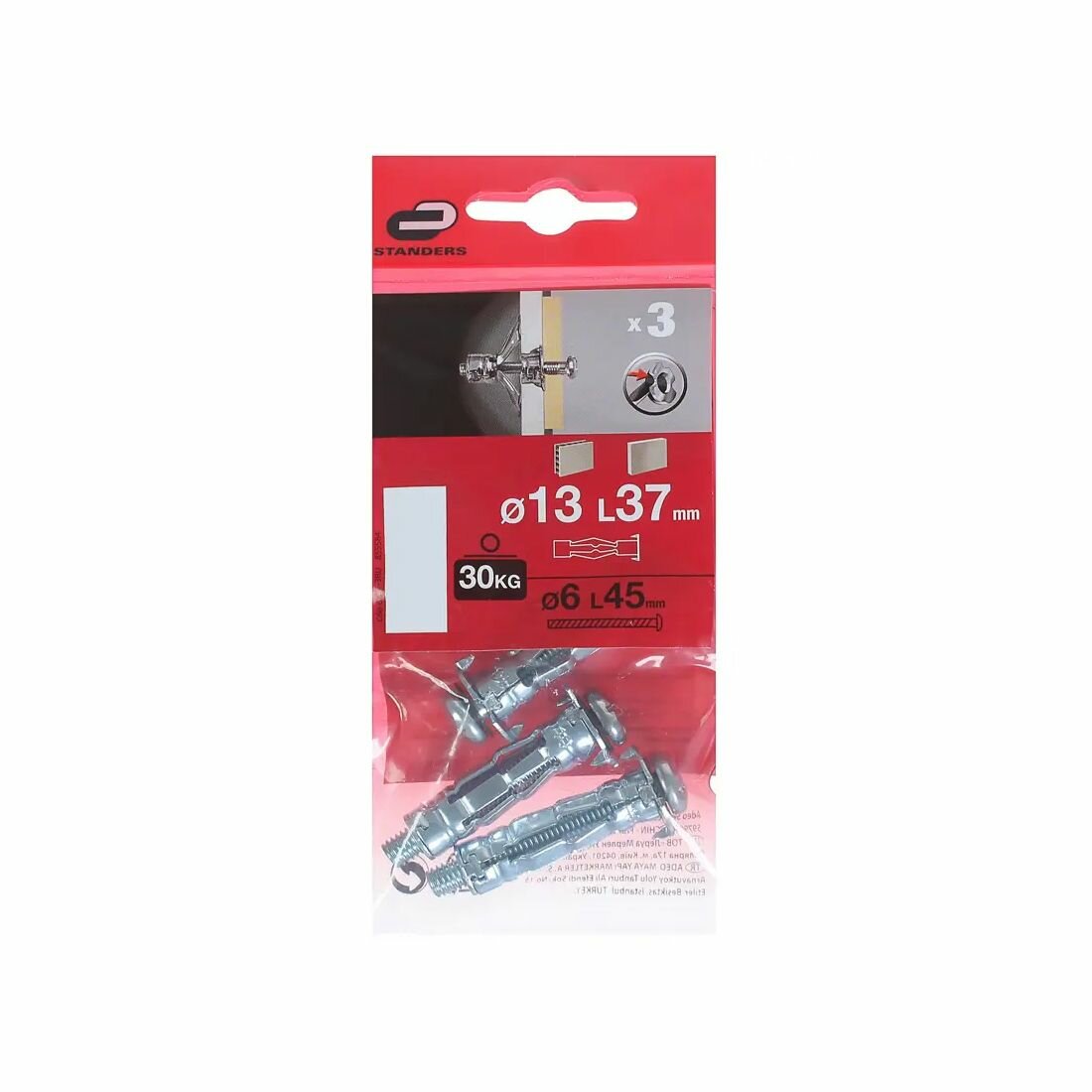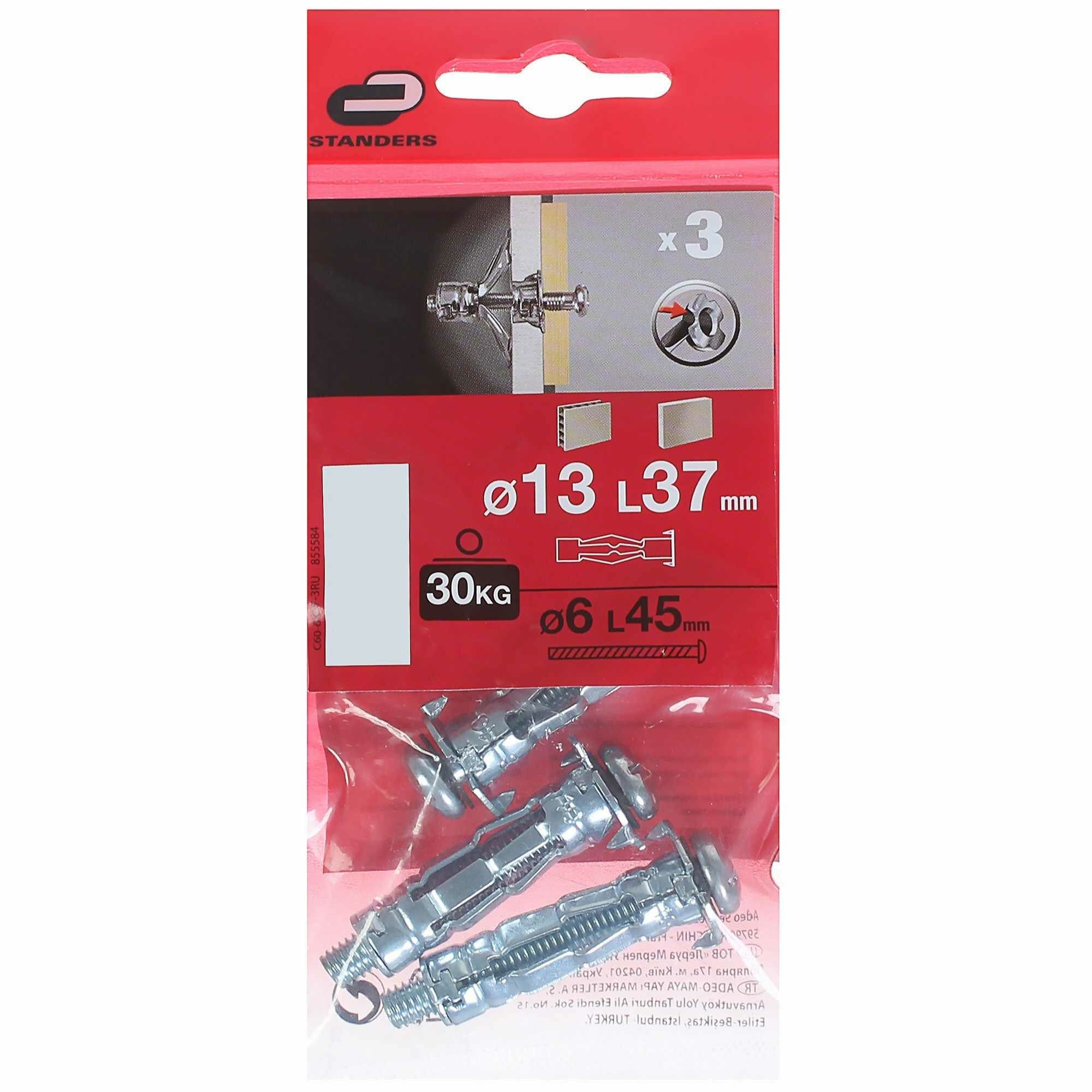 Дюбель молли Standers 13x37 мм с винтом 3 шт.