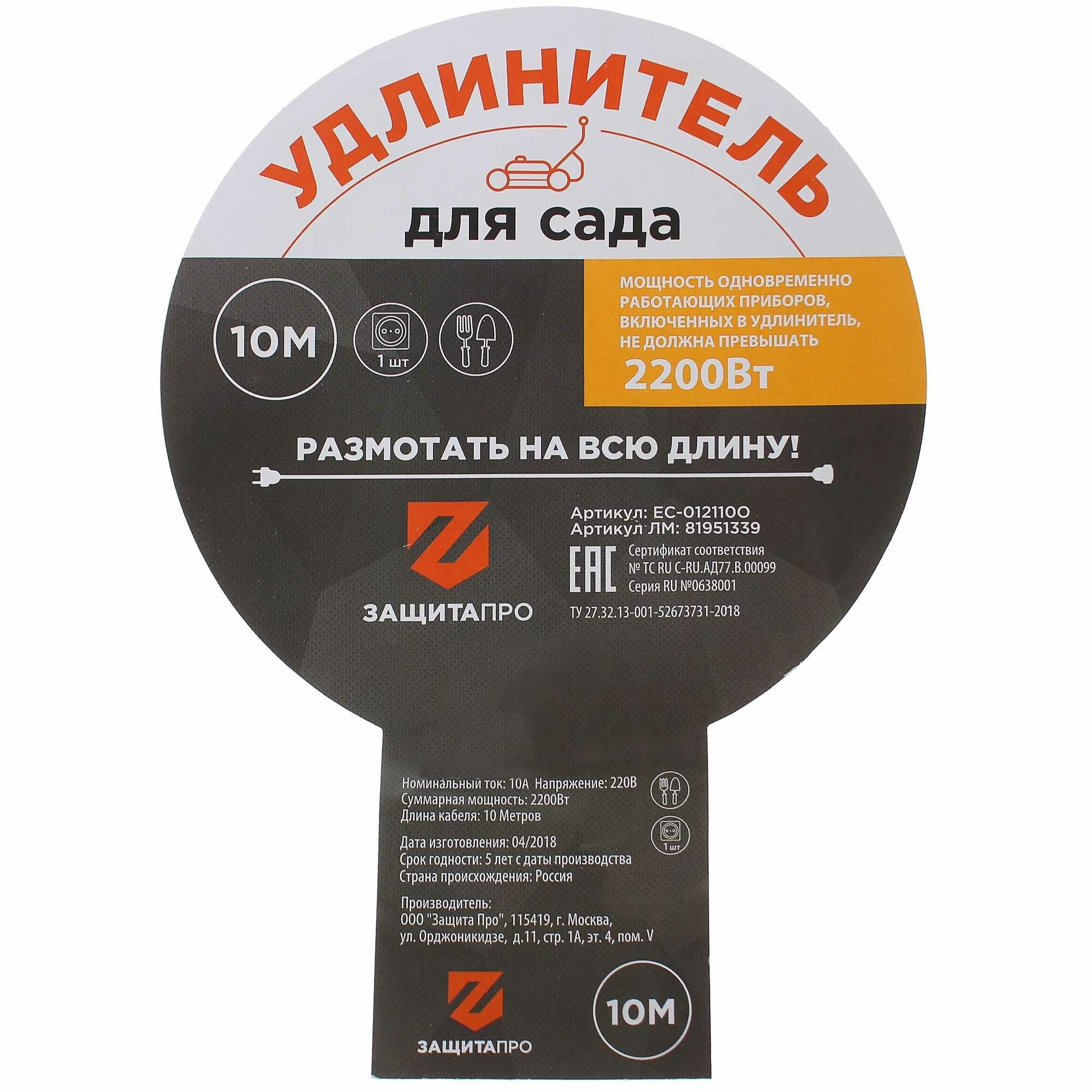 Удлинитель подходит для внутреннего и наружного применения. Используется для подключения садовой техники к электросети. Во время работы на участке источники питания часто бывают удалены, и провод длиной 10 м решает этот вопрос. Удлинитель упрощает обработку газона, уход за растениями, уборку садового или строительного мусора. Количество розеток для подключаемой техники — 1. Удлинитель изготовлен в России, гарантия — 1 год.