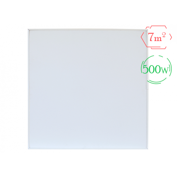 Инфракрасный потолочный электрообогреватель 500 Вт мощностью, размеры 60х60х7 см. (формат Армстронг). Влагозащищенность IP54. Способ размещения подвес с потолка либо рамка «Армстронг». Может применяться как основной и вспомогательный вид отопления. Температура поверхности 130 градусов, цвет белый, питание — шнур 10 см. с клеммной колодкой. Сертифицирован к использованию без надзора. Двойная термоизоляция, не греется с обратной стороны.