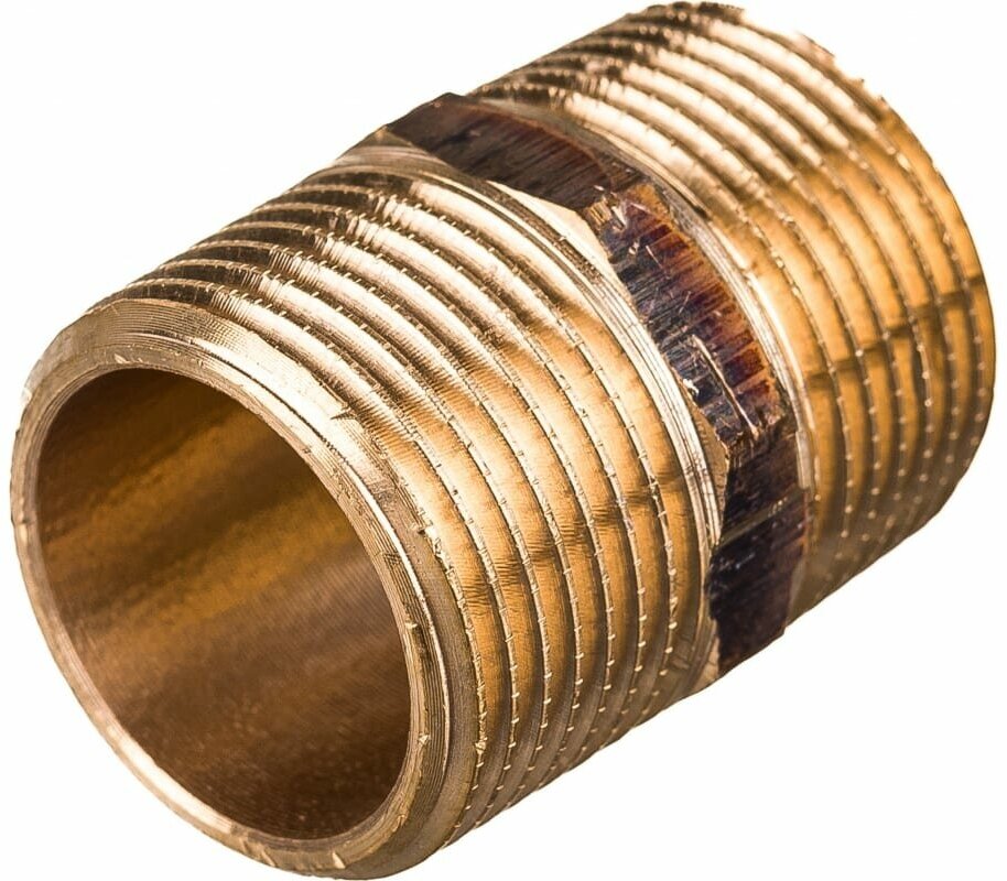 Ниппель 1" используется для постоянного или временного разборного соединения элементов трубопровода с внутренней резьбой. Фитинг изготовлен из бронзы, устойчив к коррозии, не растрескивается со временем, повышает устойчивость к коррозии всей системы. Наружная резьба имеет специальные насечки для лучшего удержания уплотнительного материала. Страна производства — Германия.