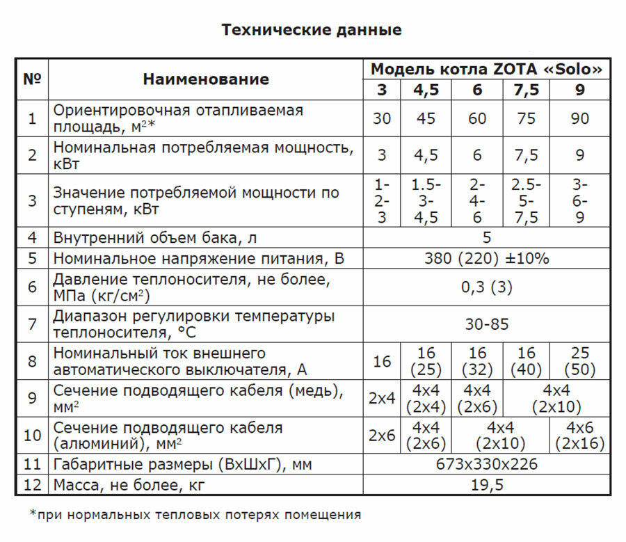 | Площадь обогрева (в м²) | До 150 (от 20 до 25 кВ) |