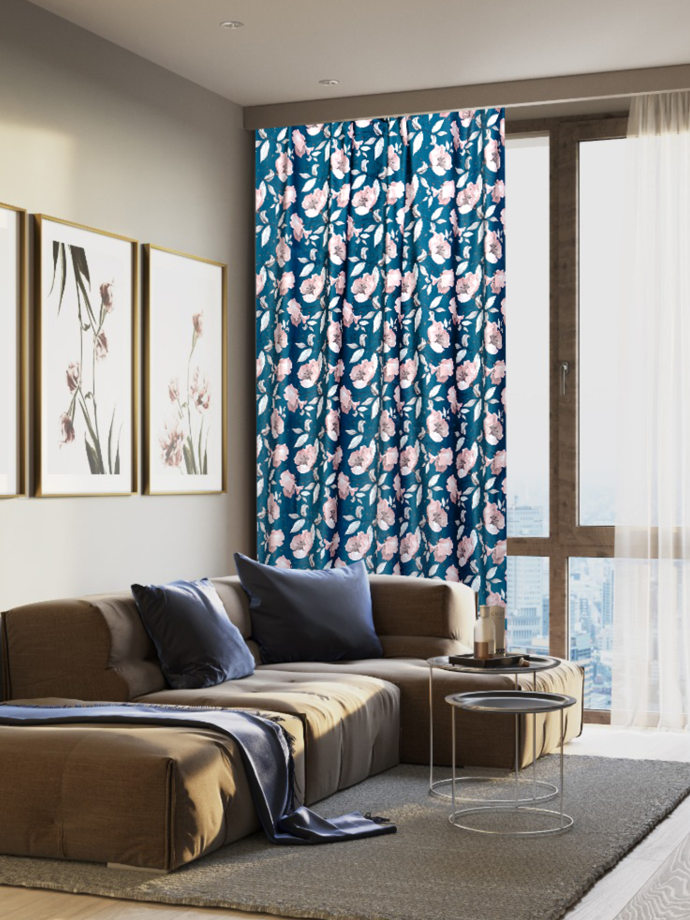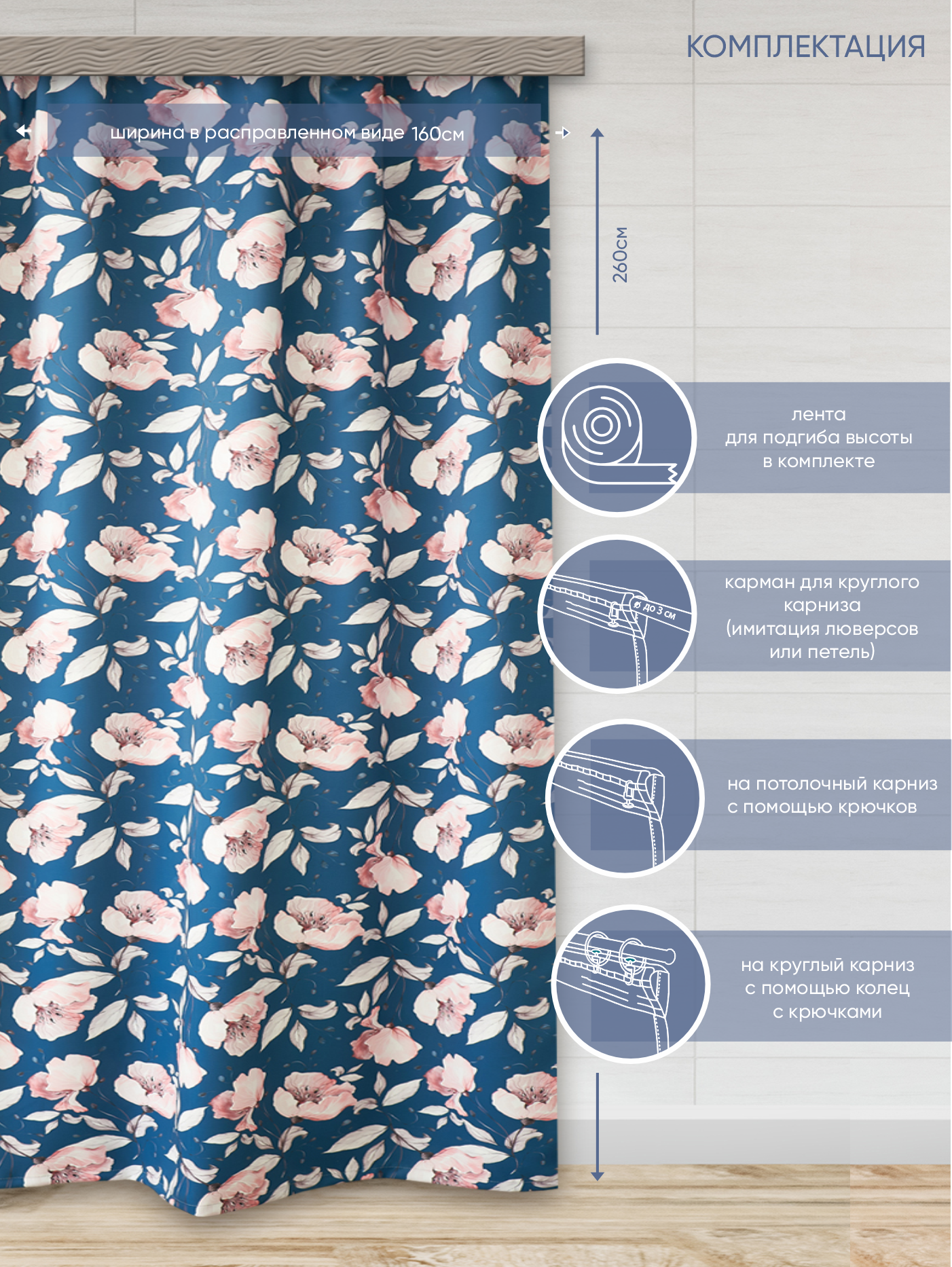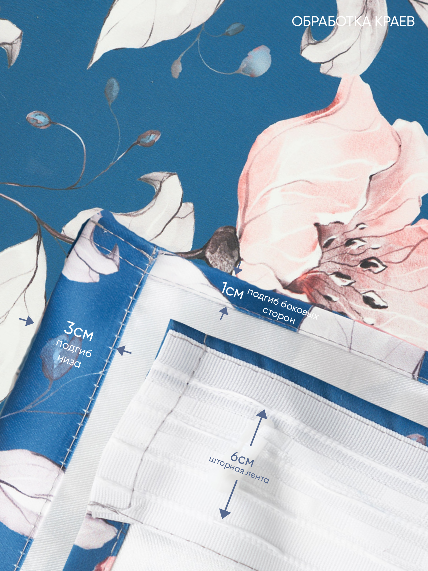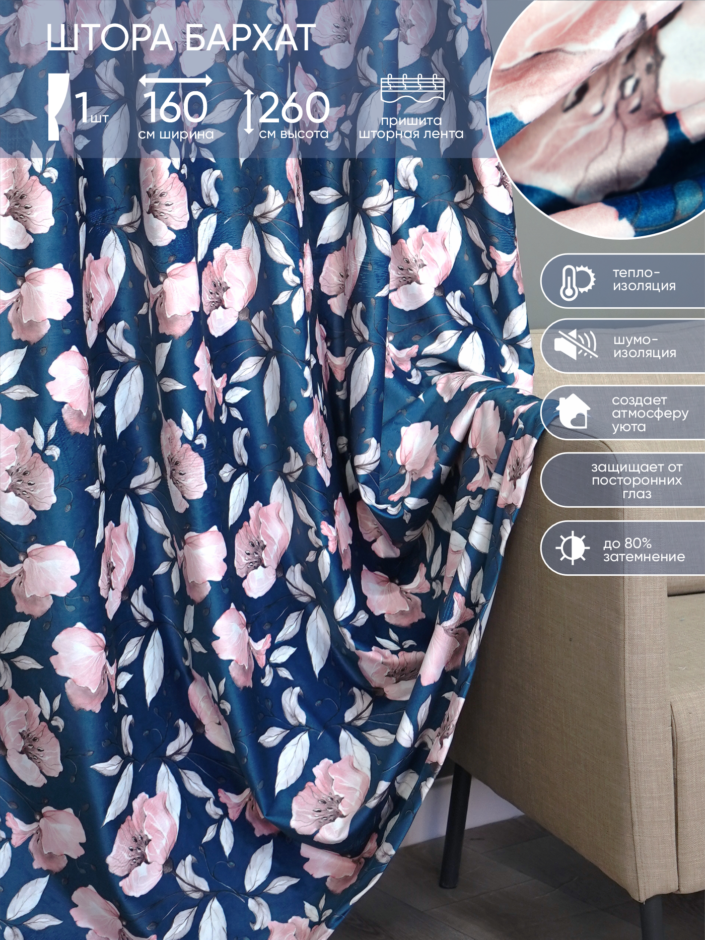 Штора на ленте «Вельвет Цветы» 160x260 см цвет синий Witerra