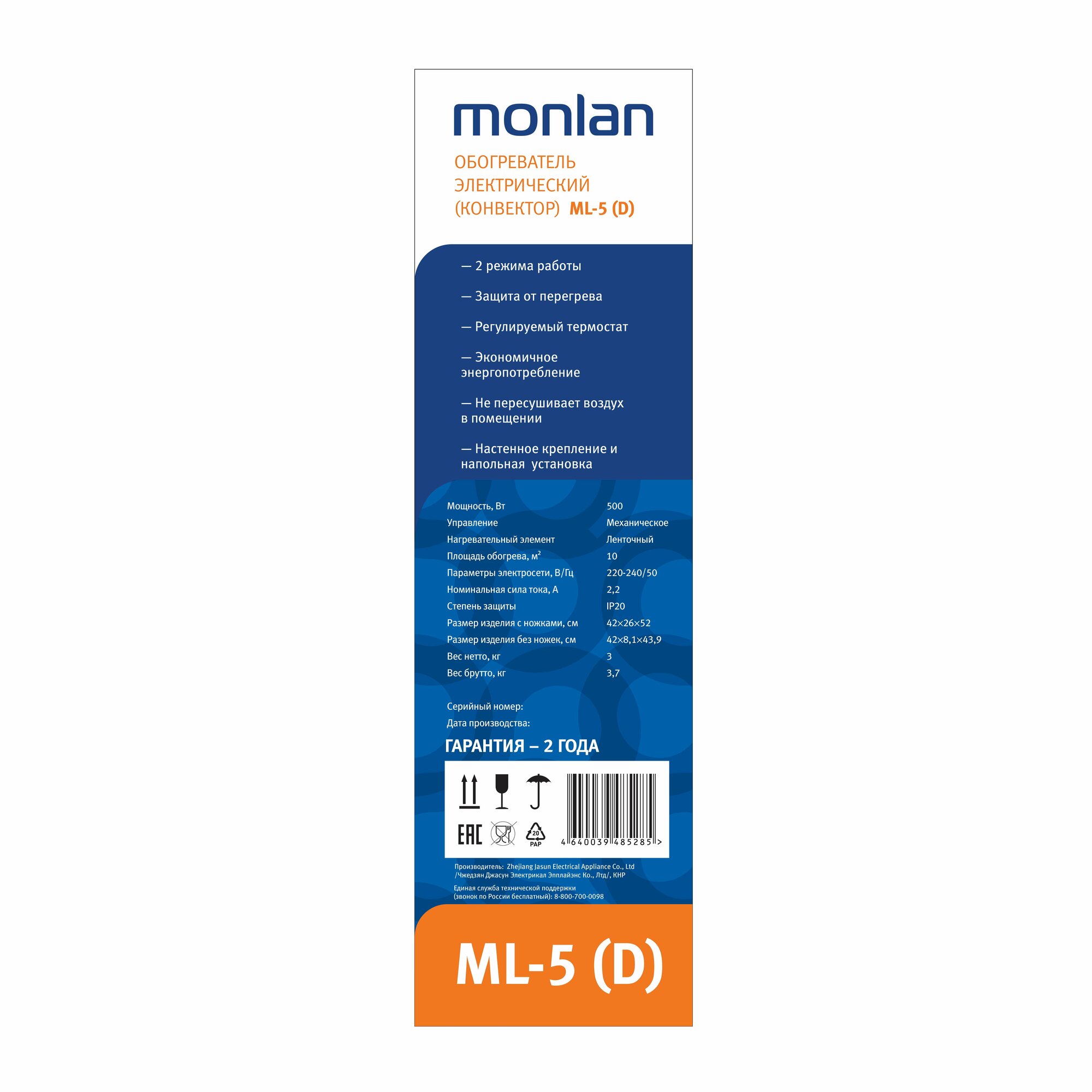 Конвектор электрический напольный Monlan ML-5 с механическим термостатом 500 Вт