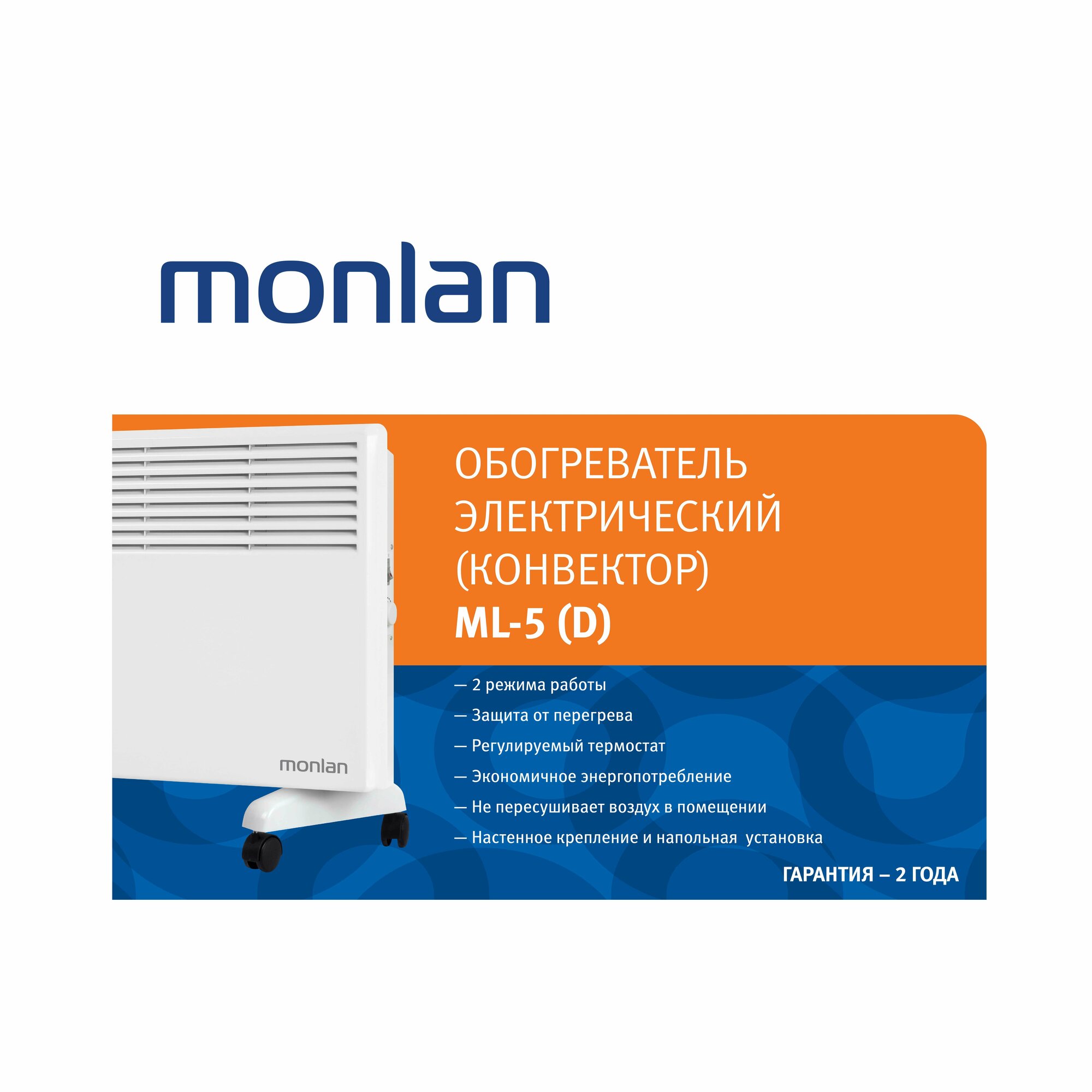 Ленточный конвектор Monlan ML-5 – это высокоэффективный электроприбор, предназначенный для обогрева помещений при помощи нагревательного стич-элемента. Встроенные регулятор режимов работы и удобный термостат помогают быстро прогреть комнату или целый дом за счёт естественной конвекции. Идущие в комплекте роликовые колёса делают прибор мобильным, а с помощью крепёжных элементов конвектор Monlan можно смонтировать на стену, сэкономив полезное место. Наличие встроенной защиты от перегрева, степени защиты IP20 и бережное отношение к влажности воздуха делают конвектор Monlan безопасным и комфортным в использовании.