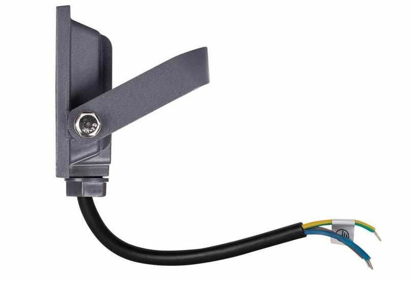 Размеры изделия — 11,1 × 9,8 × 2,1 см. Компактный светодиодный (LED) прожектор работает от сети 220-240 В. Потребляемая мощность прибора составляет 10 Вт. Светодиоды издают холодный белый (голубой) свет (температура цвета — 5700 K).