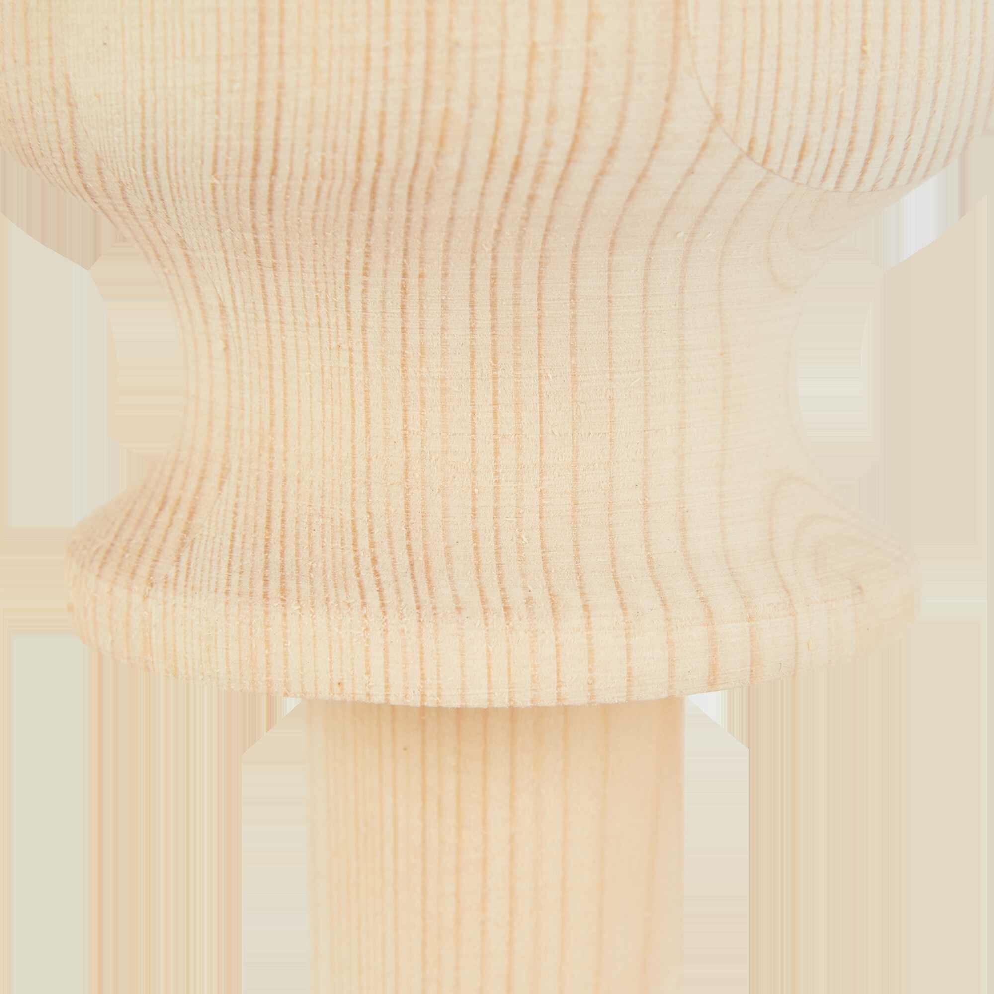 **Шар для столба с ножкой сращенный** предназначен для декорирования лестниц, заборов. Отличается простотой монтажа. Крепится с помощью винтов (рекомендуется приобрести их отдельно). Изготовлен из натуральной древесины сосны сорта экстра. Не имеет защитного покрытия. Для предупреждения разбухания, рассыхания, образования гнили, грибка необходимо покрыть изделие краской, лаком, морилкой.