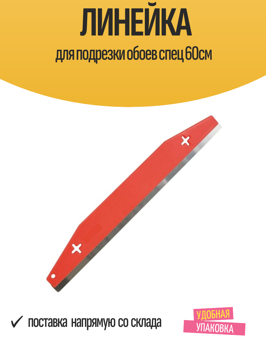 Линейка для подрезки будет полезна при проведении ремонта во время поклейки обоев. Линейка позволяет быстро и ровно отрезать кусок необходимой длины и выровнять уже наклеенную полосу непосредственно на стене. Ширина линейки - 60 см, что соответствует ширине стандартного рулона обоев.