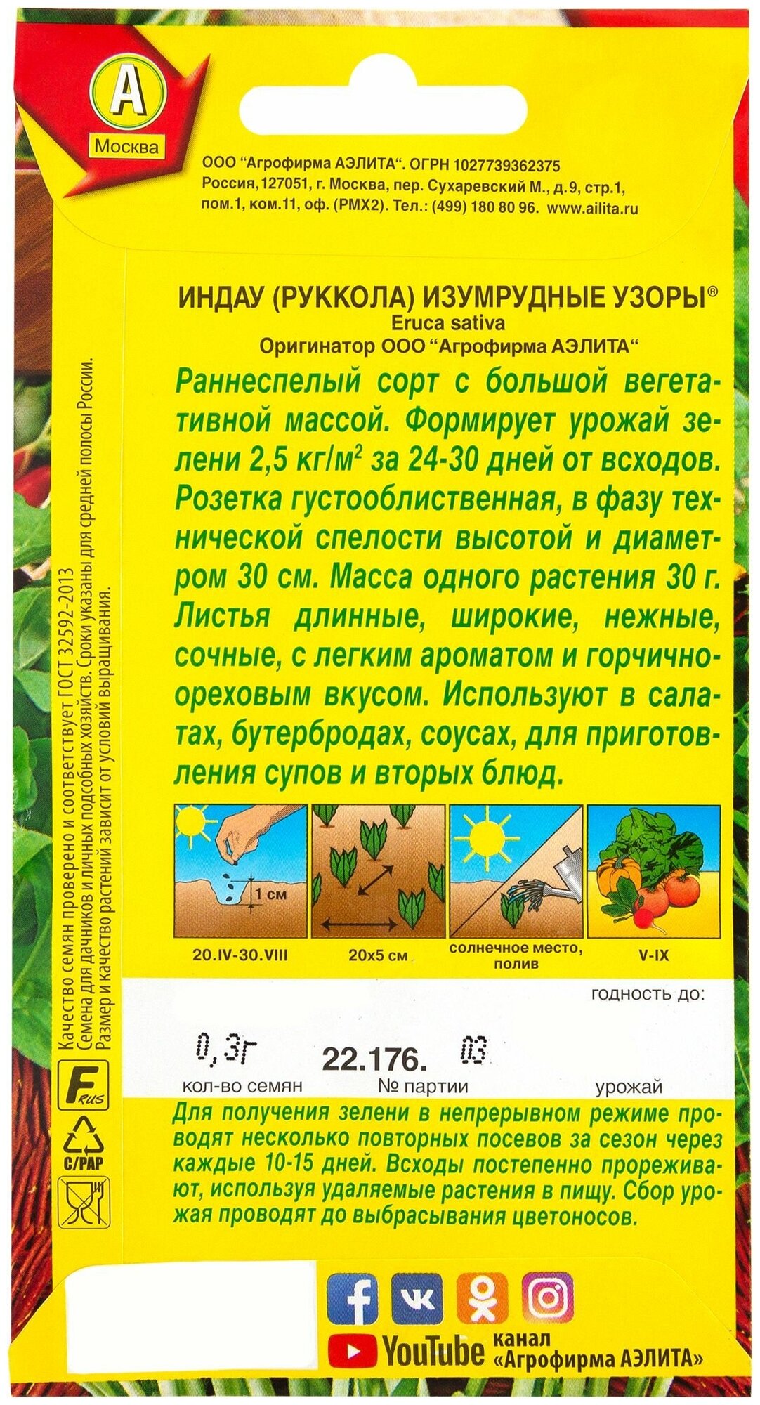 Семена Индау (Руккола) «Изумрудные узоры» 0.3 г Аэлита