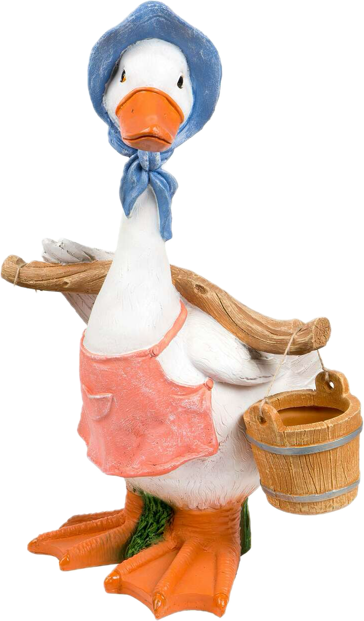 Фигура садовая «Гусыня с коромыслом» — оригинальное украшение для лужаек и цветников. Поможет сделать дизайн дачного участка, палисадника или придворовой территории более красочным и интересным, создать теплую доброжелательную атмосферу или населить уголок сада, в котором играют малыши, забавными сказочными существами. Аксессуар изготовлен из устойчивой к атмосферным воздействиям синтетической смолы. Высота изделия 60 см, ширина и глубина — 33 см и 44 см соответственно. Фигура не выглядит громоздкой, при этом она достаточно заметна среди цветов и травы.