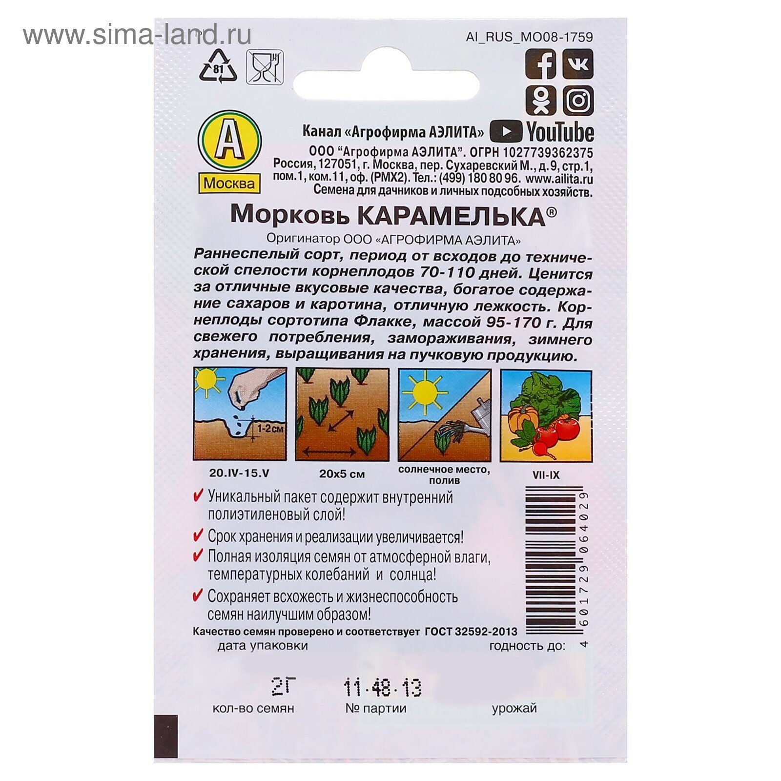 - Морковь Карамелька. Аэлита