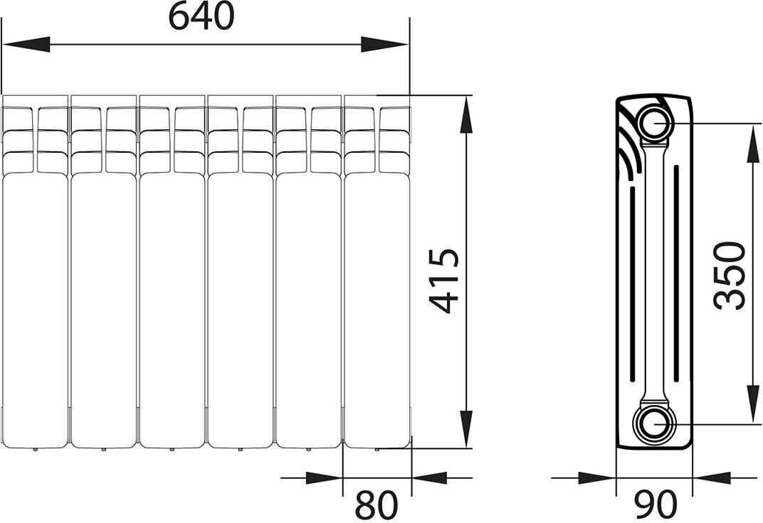 Радиатор Equation 350/90 6 cекций боковое подключение биметалл (Equation bimetal 350 6 сек)