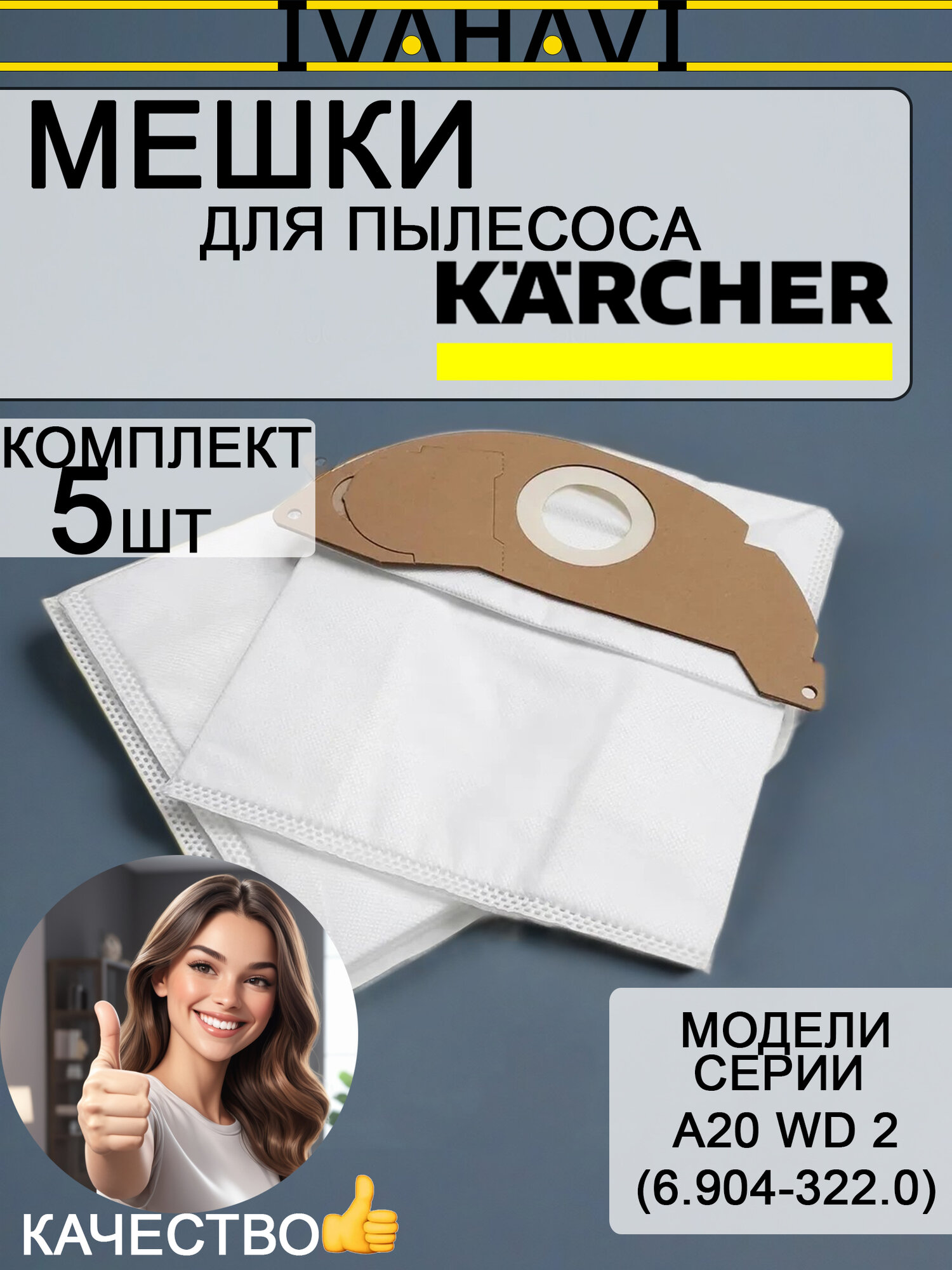 Фильтр-мешки бумажные Karcher А2004 5 шт. (6.904-322.0)