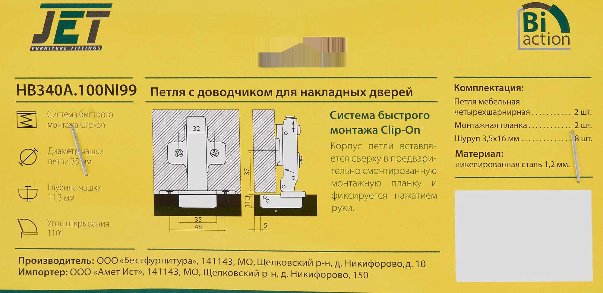 Сервис сравнения цен СкидкаГИД предлагает сравнить цены на товар «Петля мебельная накладная Get HB340A.100 Clip-on 35 мм 105° Jet»