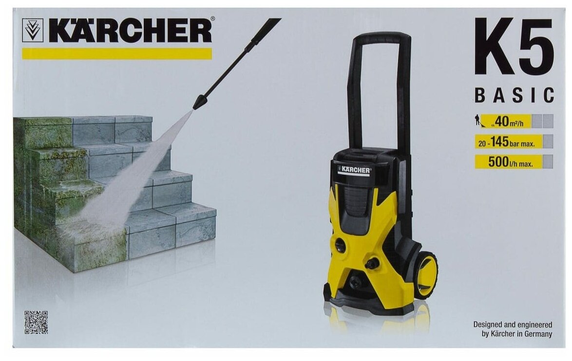 Минимойка Karcher K5 Basic, 145 бар, 500 л/ч – многофункциональное устройство для мойки автомобилей, мотоциклов, фасадов домов, садового инвентаря. Позволяет быстро и эффективно удалить даже самые стойкие загрязнения.