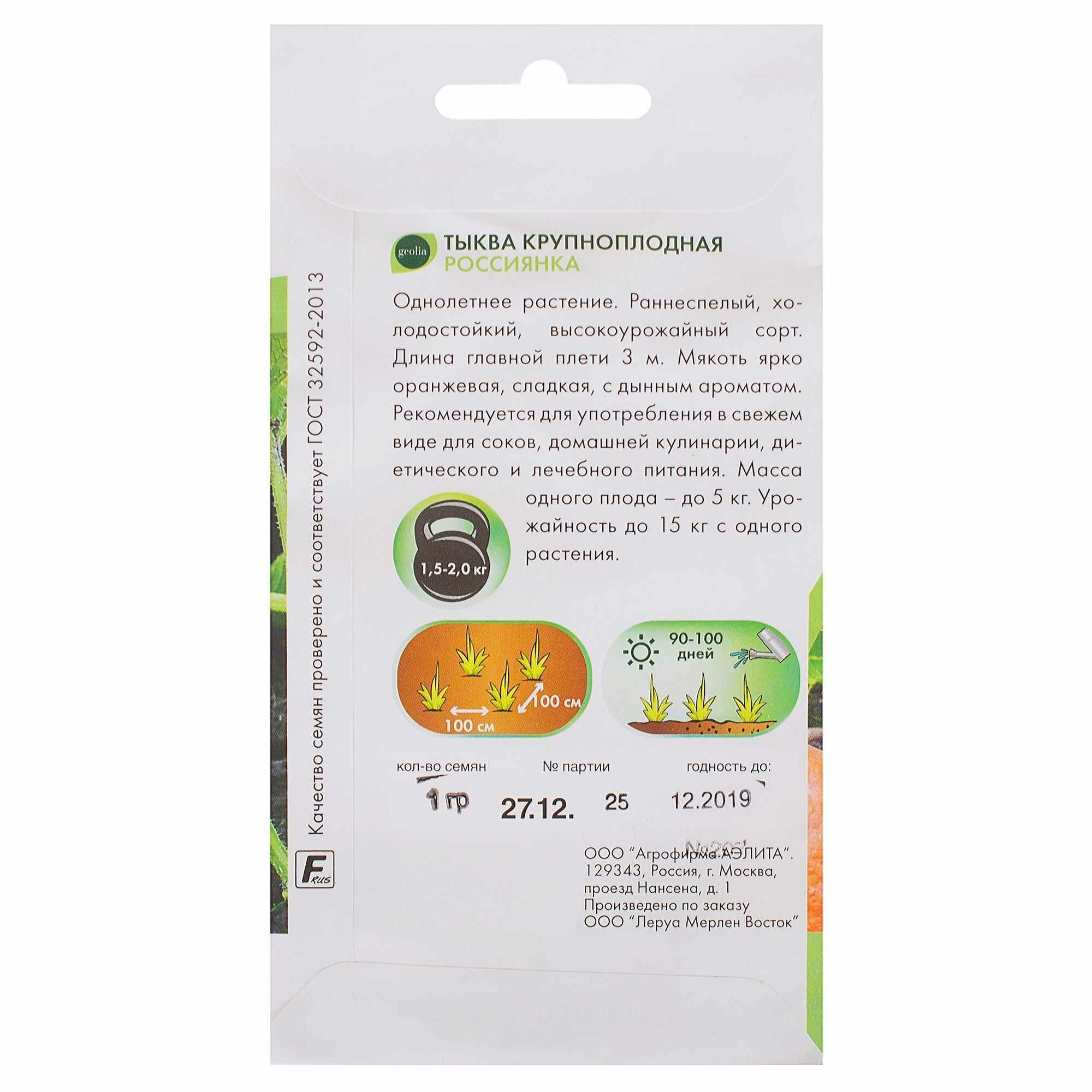 Семена Тыква крупноплодная Geolia «Россиянка»