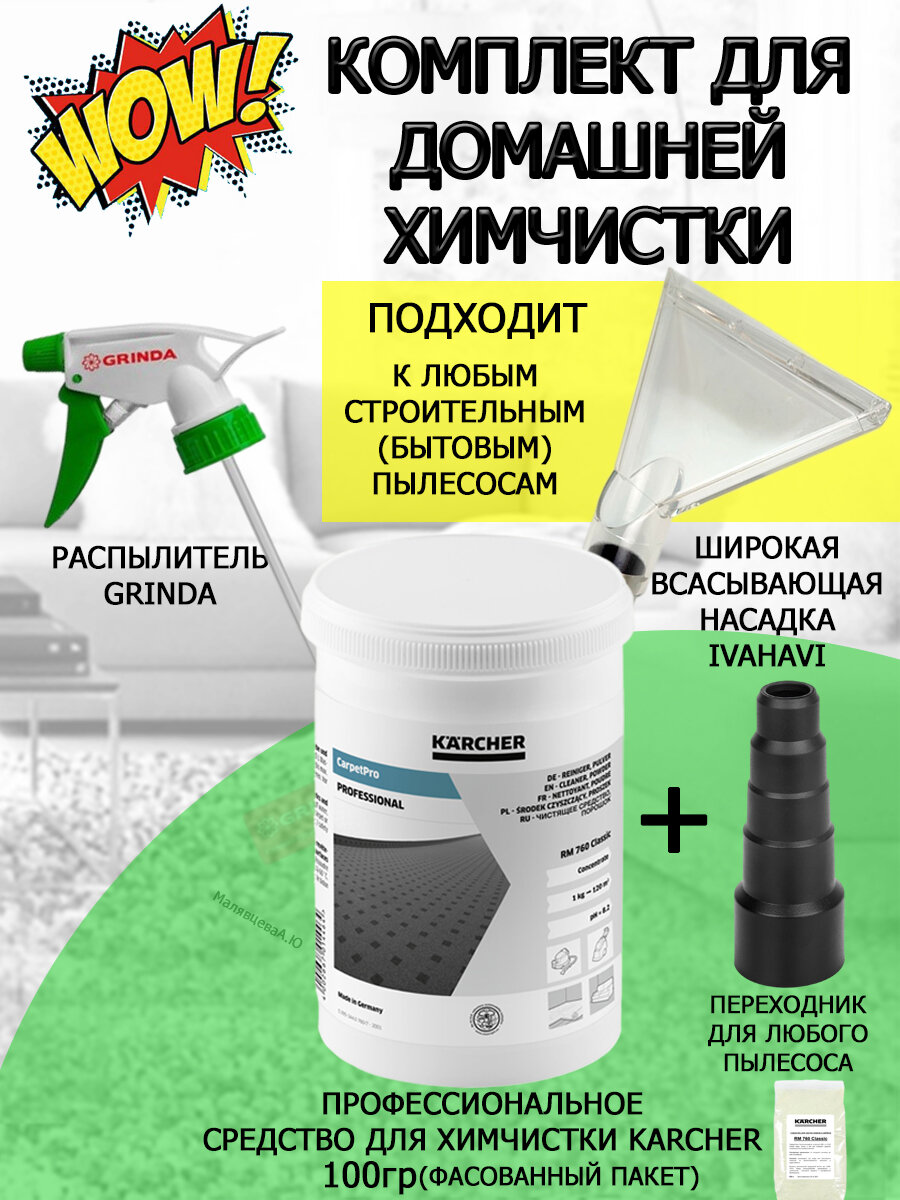 Порошковое чистящее средство Karcher RM 760 Classic - эффективное порошковое средство для общей чистки моющим пылесосом RM 760 Classic. Для текстильных напольных покрытий, обивки стен и мягкой мебели (в том числе со смешанными и синтетическими волокнами).