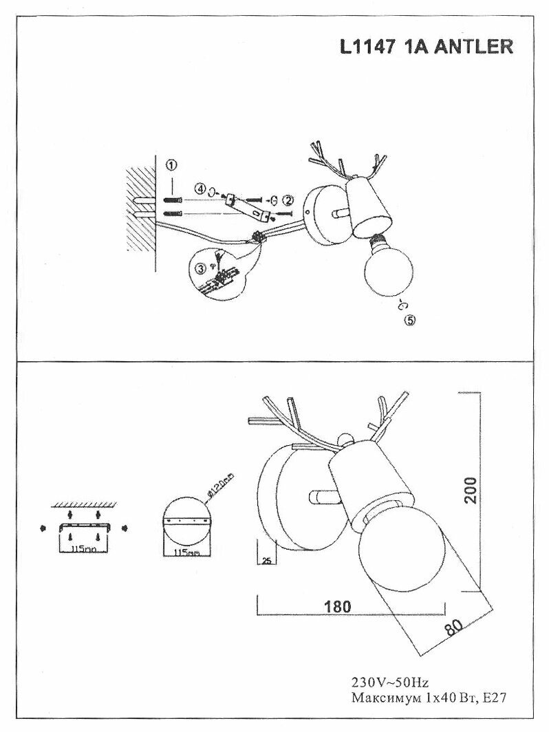Бра Antler L1147-1A 1хE27х40 Вт Lamplandia
