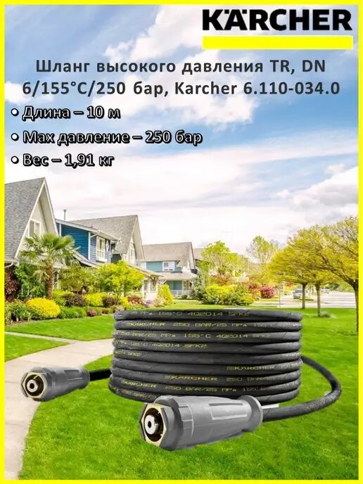 Шланг высокого давления Karcher Easylock с защитой от перегибов. С запатентованным поворотным соединением с пистолетом (AVS) и ручным резьбовым разъемом. DN 6/155°C/250 бар, 10 м.