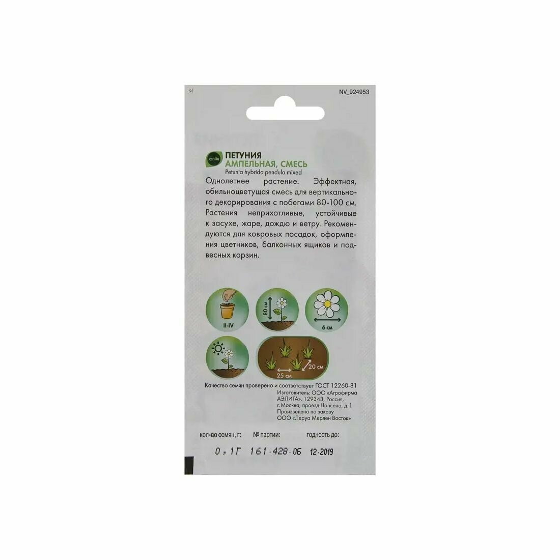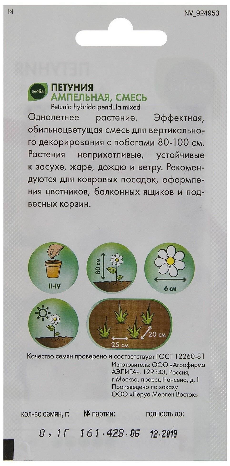 | Вид семян | Россыпь |