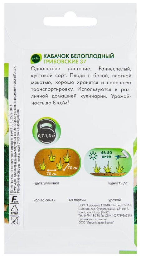 Сервис сравнения цен СкидкаГИД предлагает сравнить цены на товар «Семена Кабачок белоплодный Geolia «Грибовский» 37»