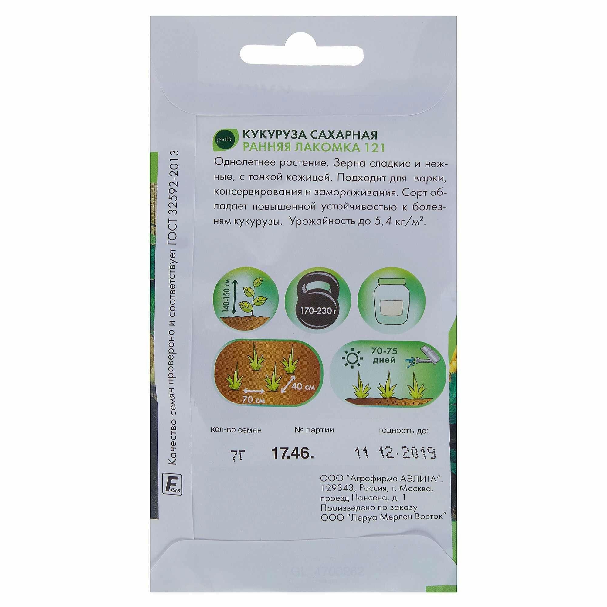 Кукуруза Geolia «Ранняя лакомка» — раннеспелый сорт с нежным сладким вкусом. Взрослое растение достигает высоты 140-150 см, формирует плотные початки конической формы, в каждом из которых до 12 рядов семян с нежной кожицей. В пищу употребляется в свежем и вареном виде, консервированные и замороженные зерна используются для приготовления салатов и гарниров.