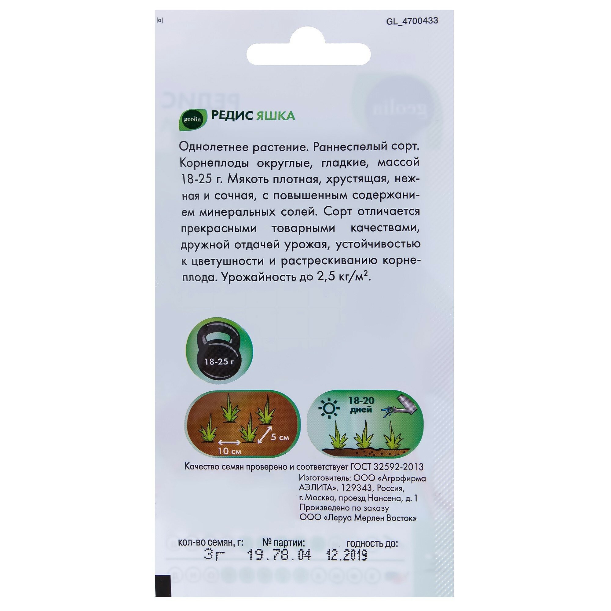 Семена Редис Geolia «Яшка»