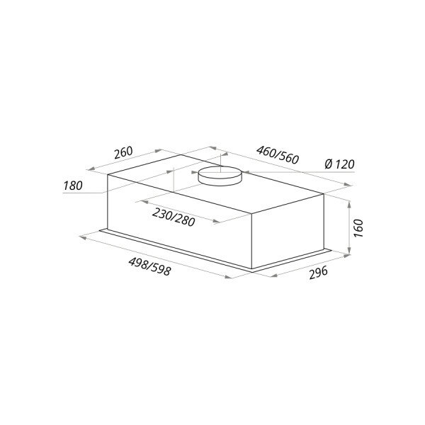 Ширина вытяжки 60 см, высота 16 см (максимальная — 16 см), глубина — 29,6 см. Посадочные размеры (чтобы знать, какое должно быть отверстие в кухонном шкафу над плитой):