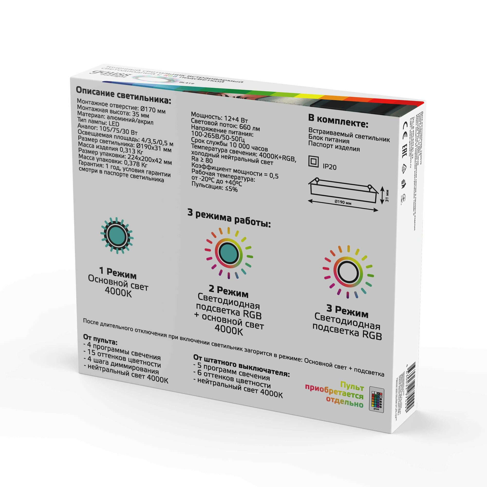 Светильник точечный светодиодный встраиваемый Gauss Backlight RGB BL417 под отверстие 120 мм 2.25 м² RGB цвет белый