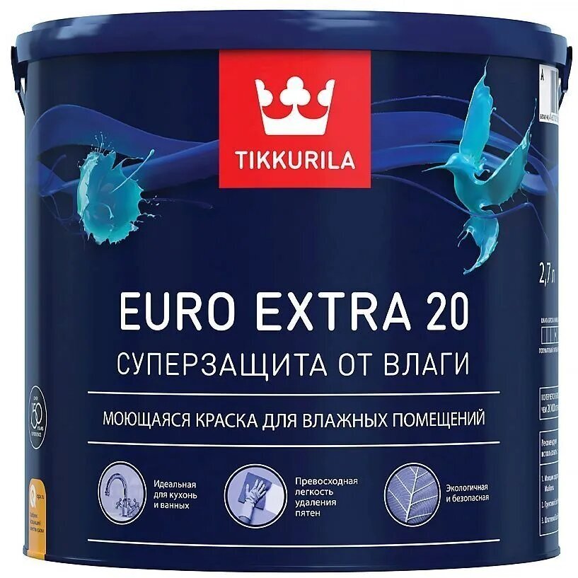 Краска водно-дисперсионная Тиккурила Евро 20 база С, 2,7 л — отделочный материал, устойчивый к повышенной влажности. Не содержит токсичных компонентов, не имеет запаха, пригоден для использования в жилых помещениях.