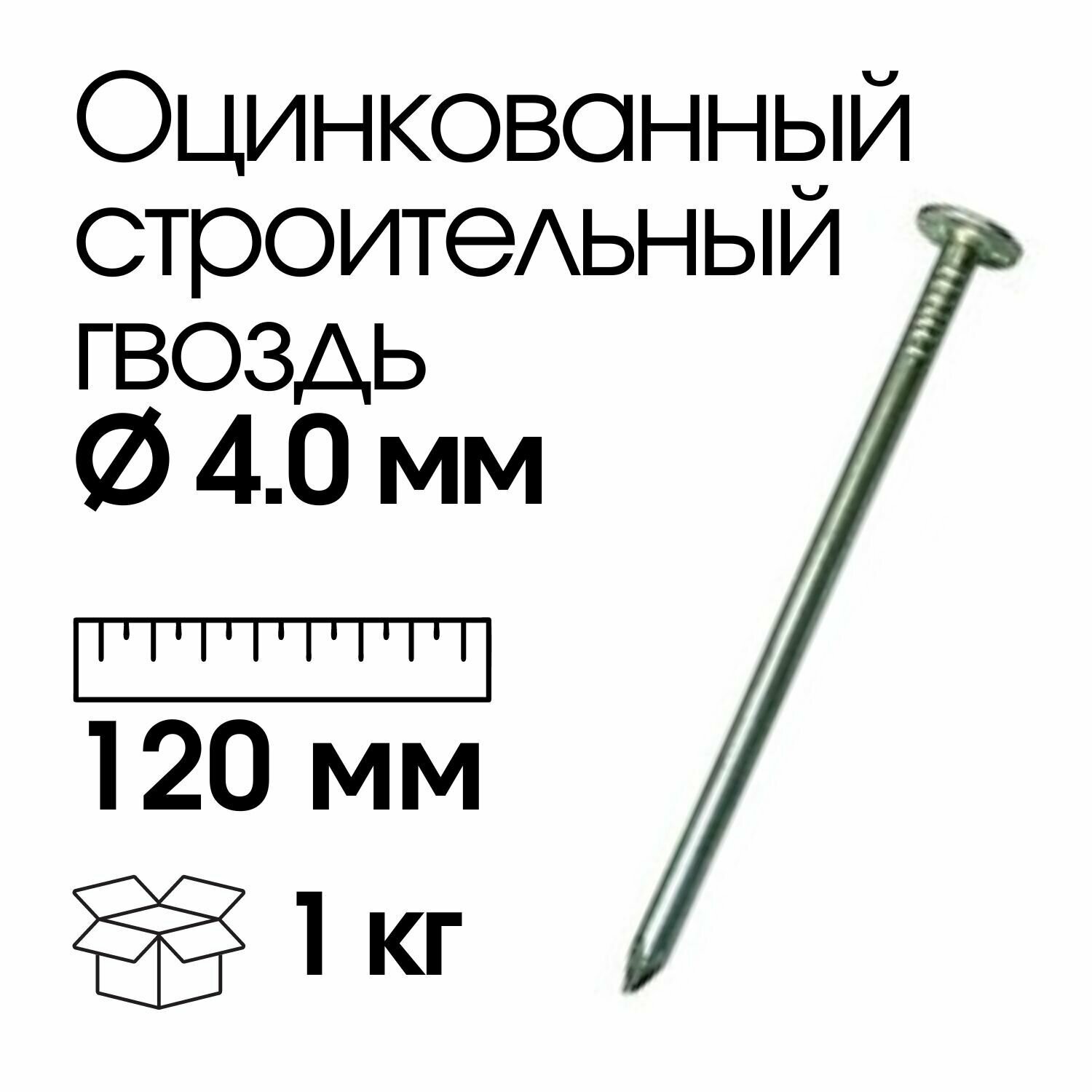 | Комплект поставки | гвозди строительные оцинкованные 4,0x120 мм, 1 кг |