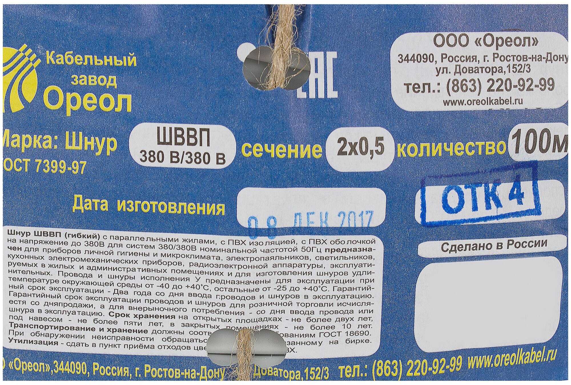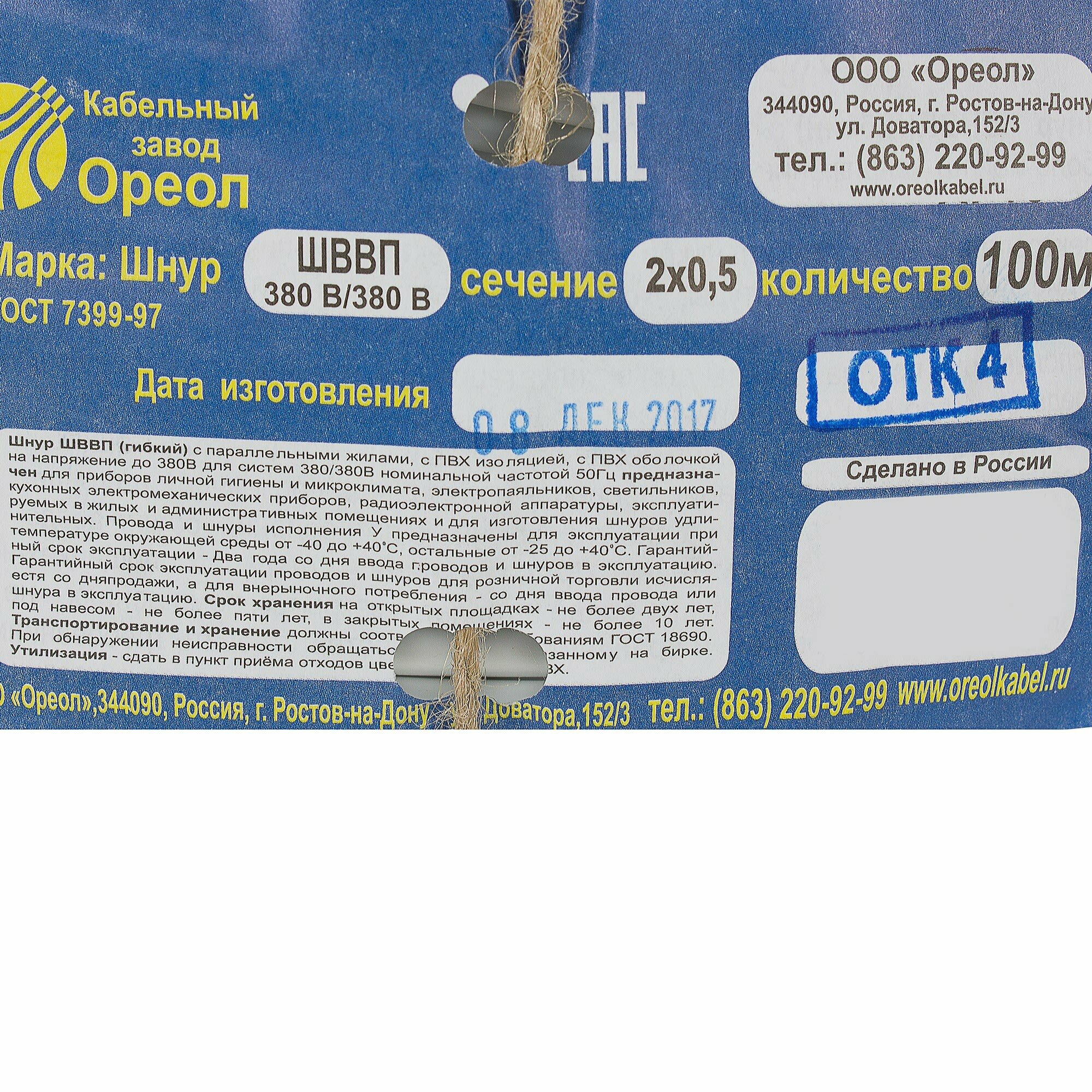 Провод Ореол ШВВП 2х0.5 100 м ГОСТ 00000052775