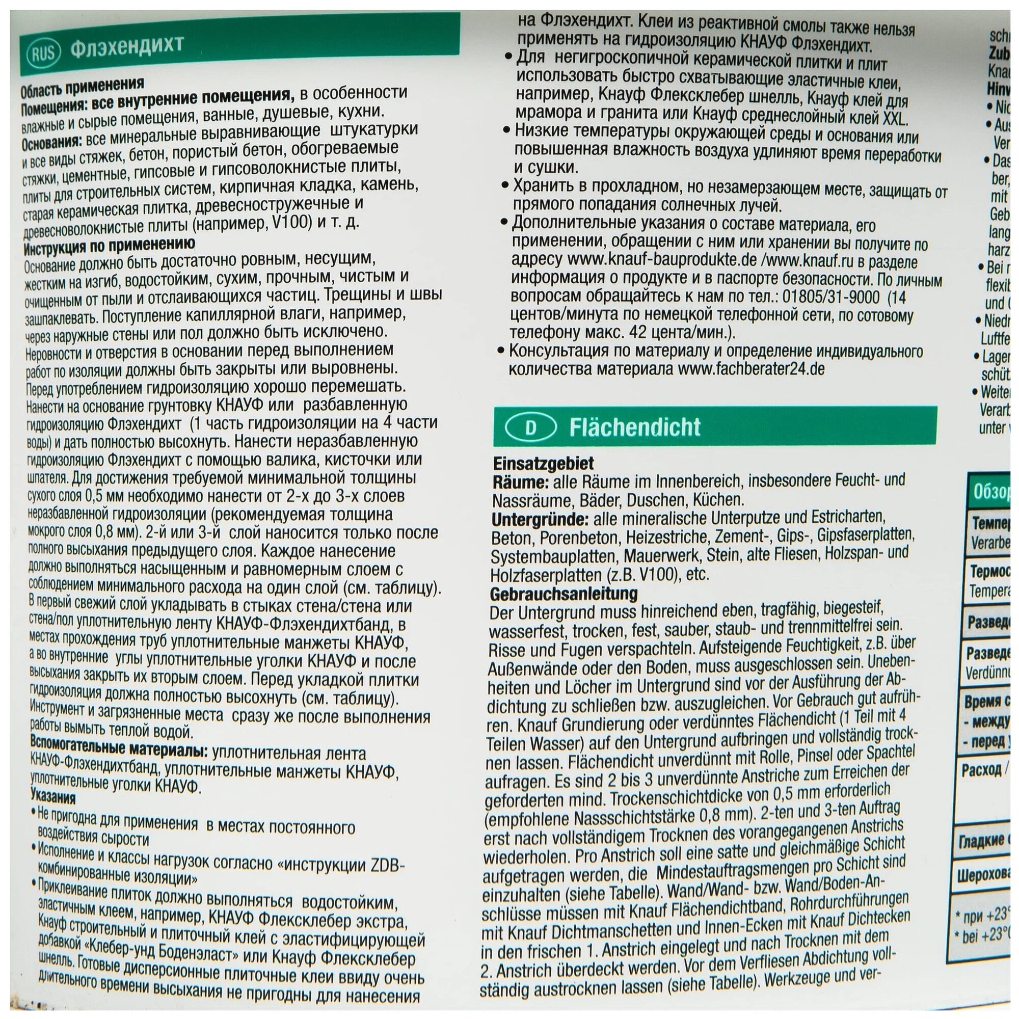| Основа | Флехендихт представляет собой водную дисперсию синтетического латекса и инертных заполнителей, голубого цвета. |