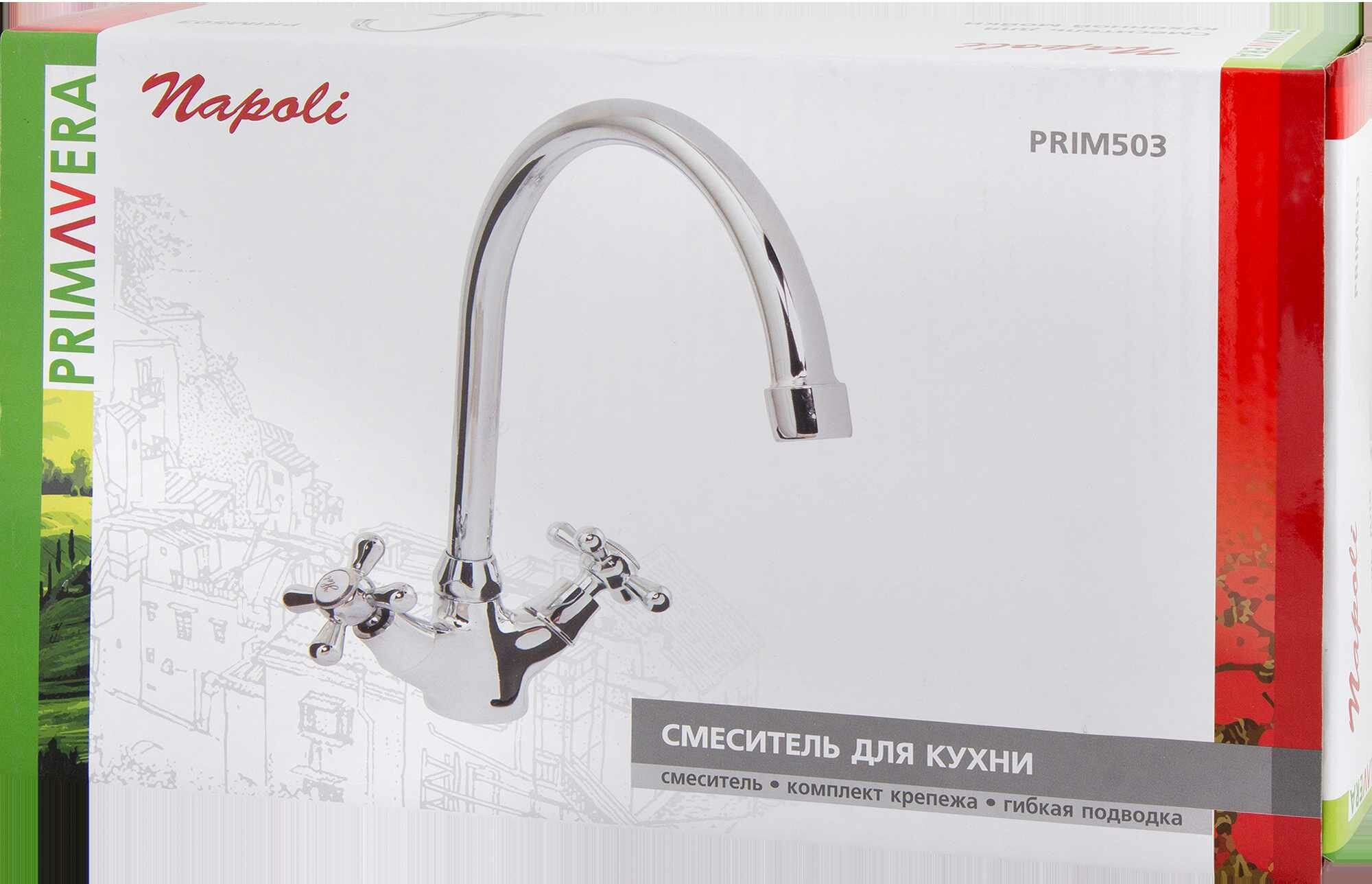 Смеситель для кухни Primavera Napoli — сантехнический прибор, который регулирует и смешивает потоки воды для получения необходимой температуры и напора. Излив высокий («C»). Общая высота смесителя — 31,5 см.