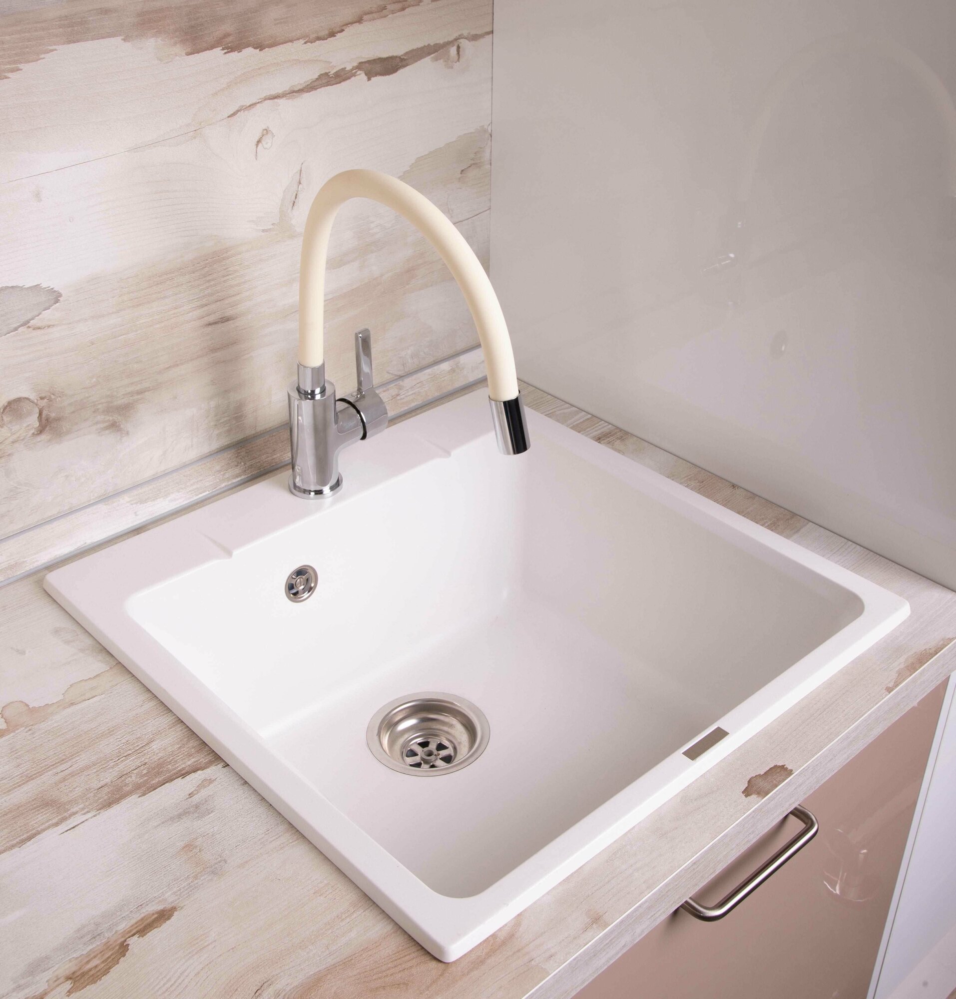 Смеситель для кухни Esko Coralli белый — сантехнический прибор для установки на кухонную мойку. Регулирует и смешивает потоки воды для получения необходимой температуры и напора. Имеет гибкий излив, позволяющий гораздо удобнее наполнять ёмкости, мыть посуду и ухаживать за мойкой.