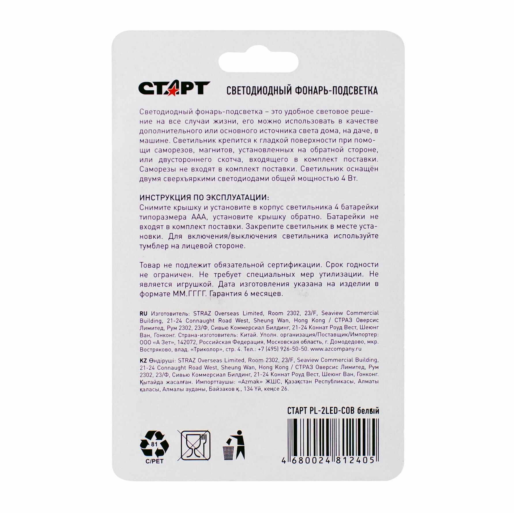 Светильник светодиодный Старт PL-2LED-COB на батарейках цвет белый