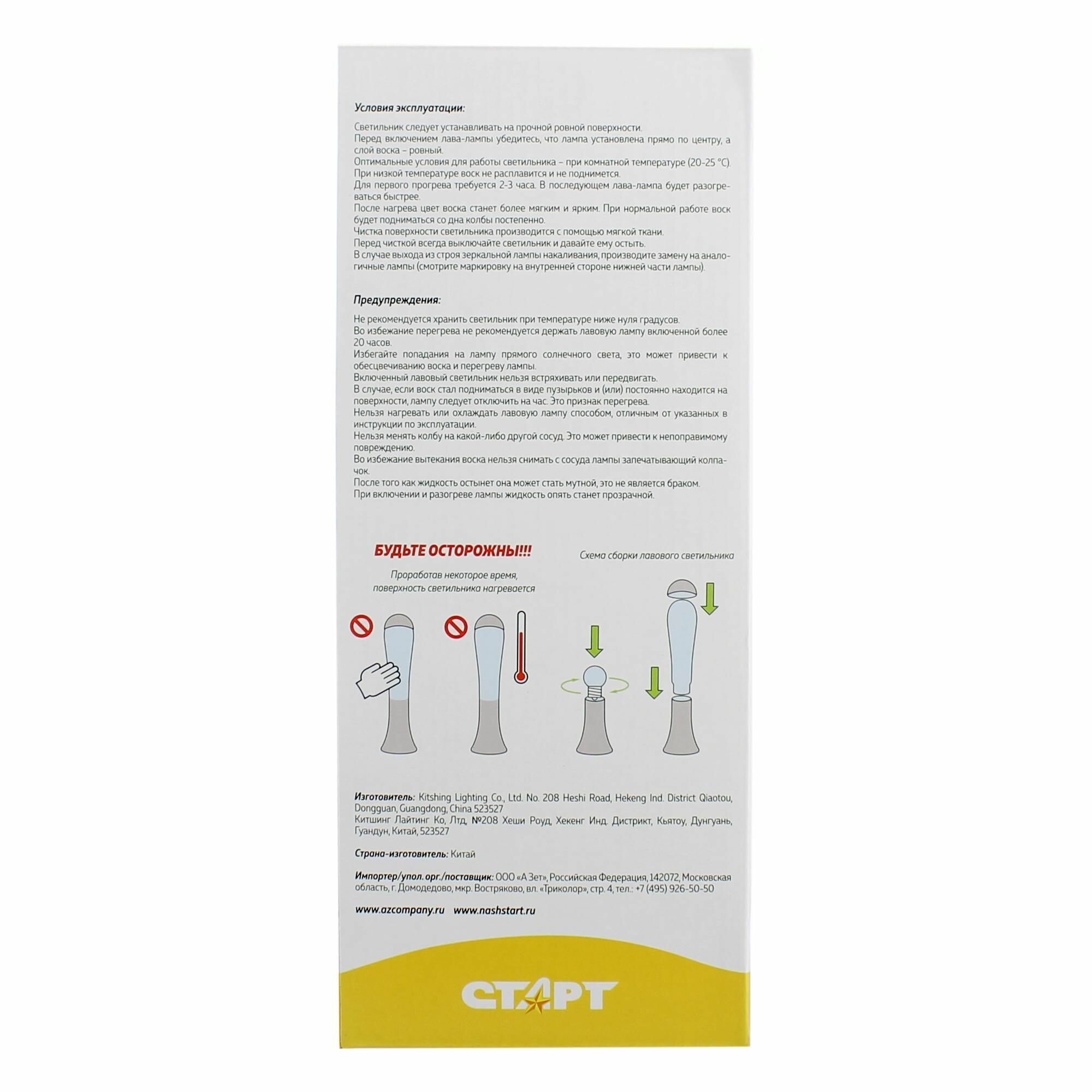 Декоративный светильник Старт «Лава-лампа» — декоративный светильник-ночник, представляющий собой завораживающее световое зрелище. В домашних условиях светильник создаст расслабляющий медитативный эффект после трудового дня, снимет усталость или поможет заснуть ребенку под очаровательное движение цветной лавы.