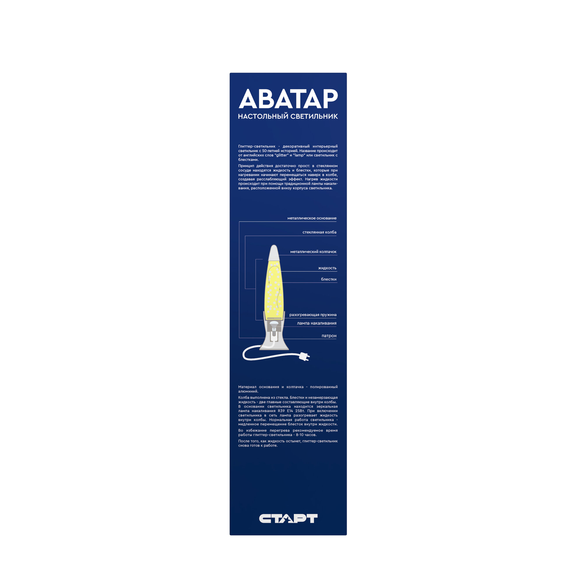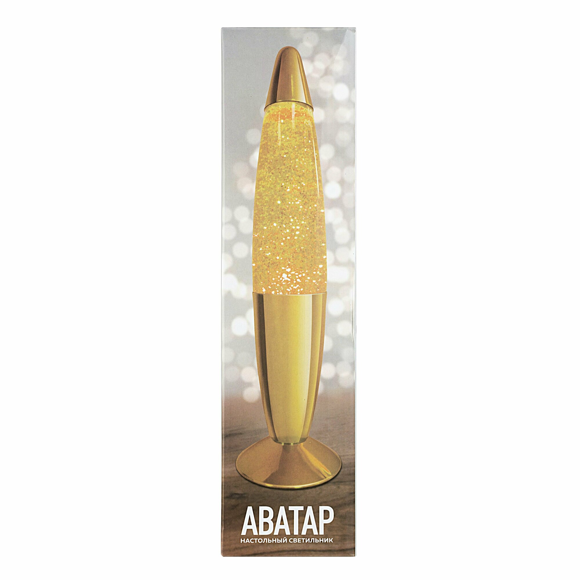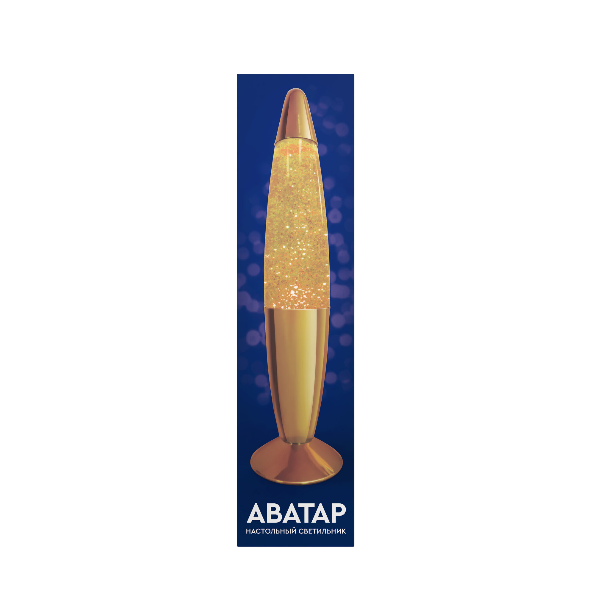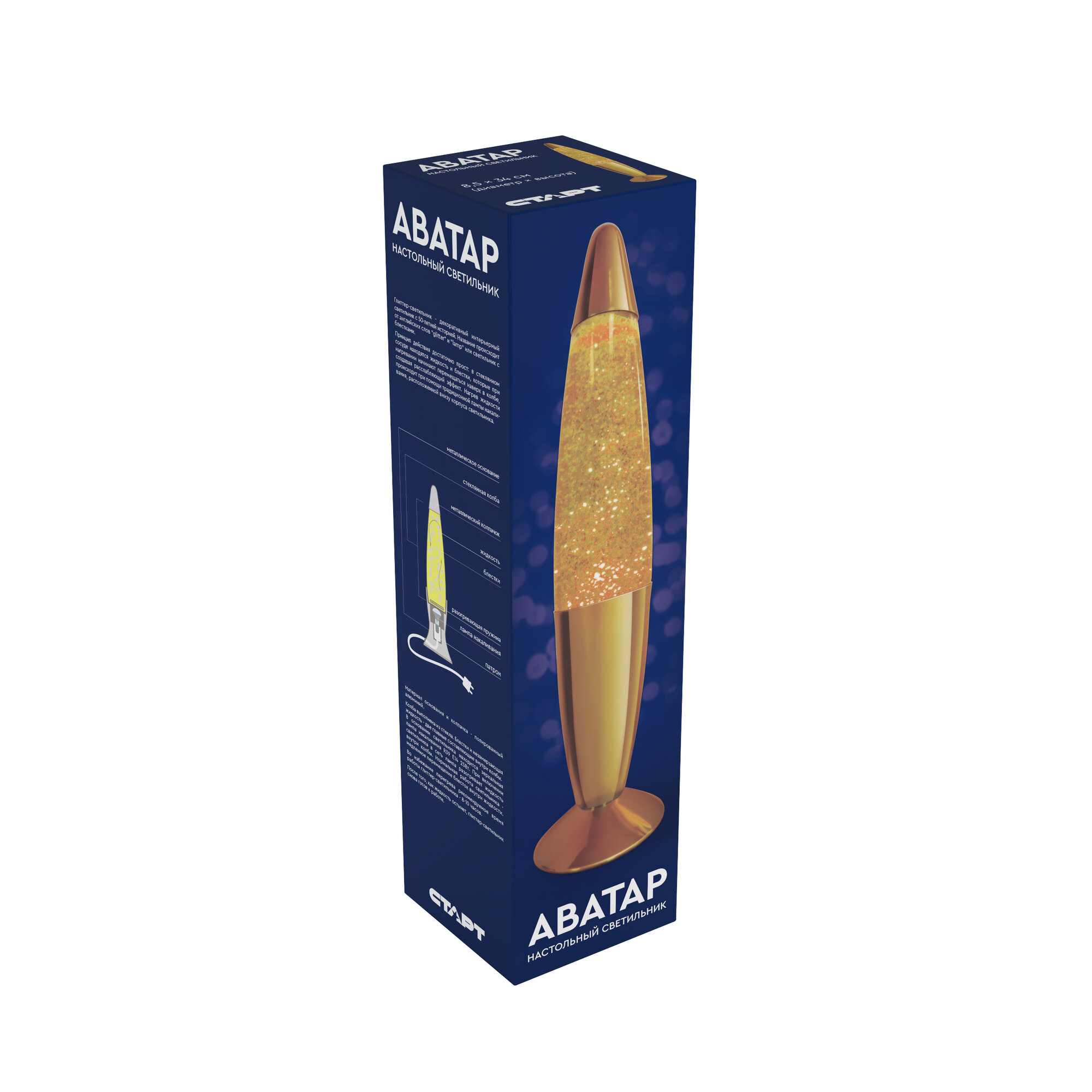 Настольная лампа Старт «Аватар» - декоративный светильник с жидкостью, заполняющей полупрозрачный корпус устройства, с золотыми блёстками.
