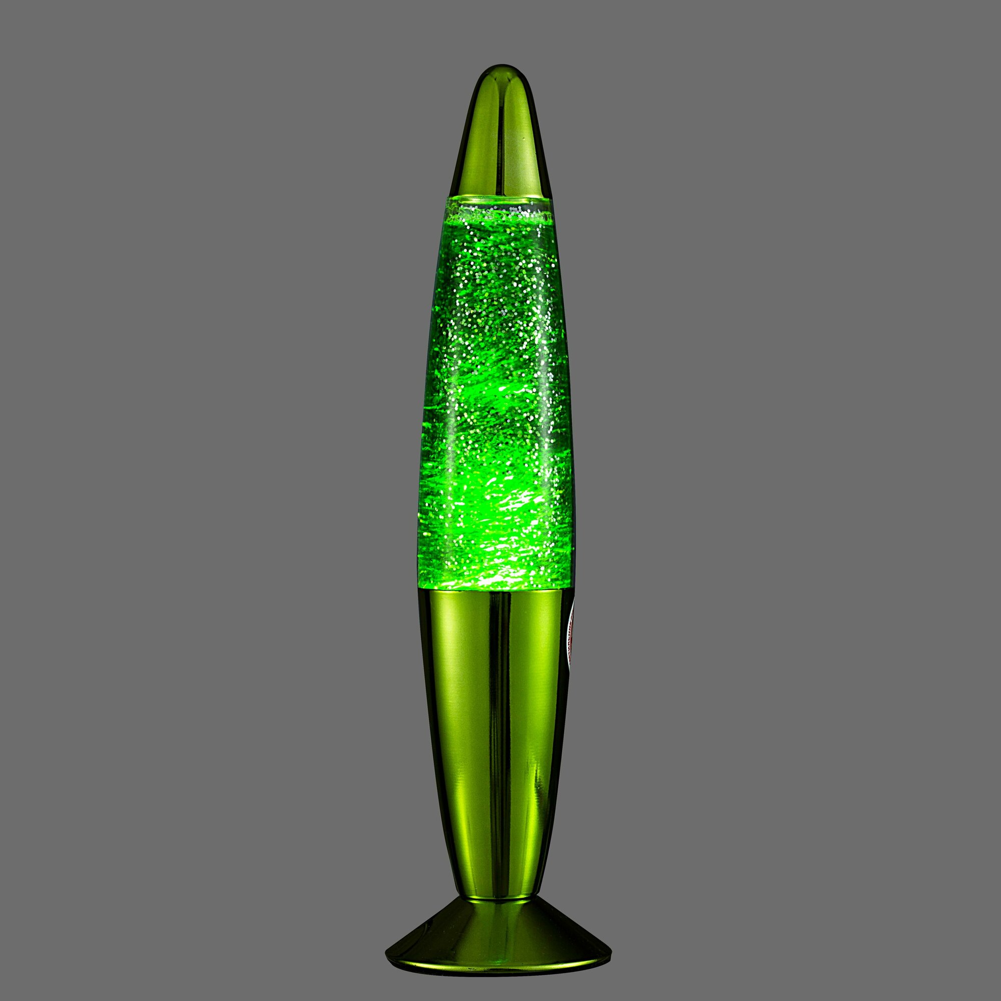 В неработающем светильнике глиттеры собраны на дне колбы и начинают подниматься вверх, когда ночник включен. Всё более быстрое перемещение разноцветных блёсток в светящемся стекле создаёт потрясающий визуальный эффект.