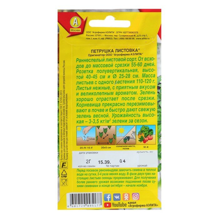 На сегодняшний день товар «Семена Петрушка листовая «Листовка» 2 г Аэлита» можно купить с кешбеком в 1 магазине: Яндекс.Маркет